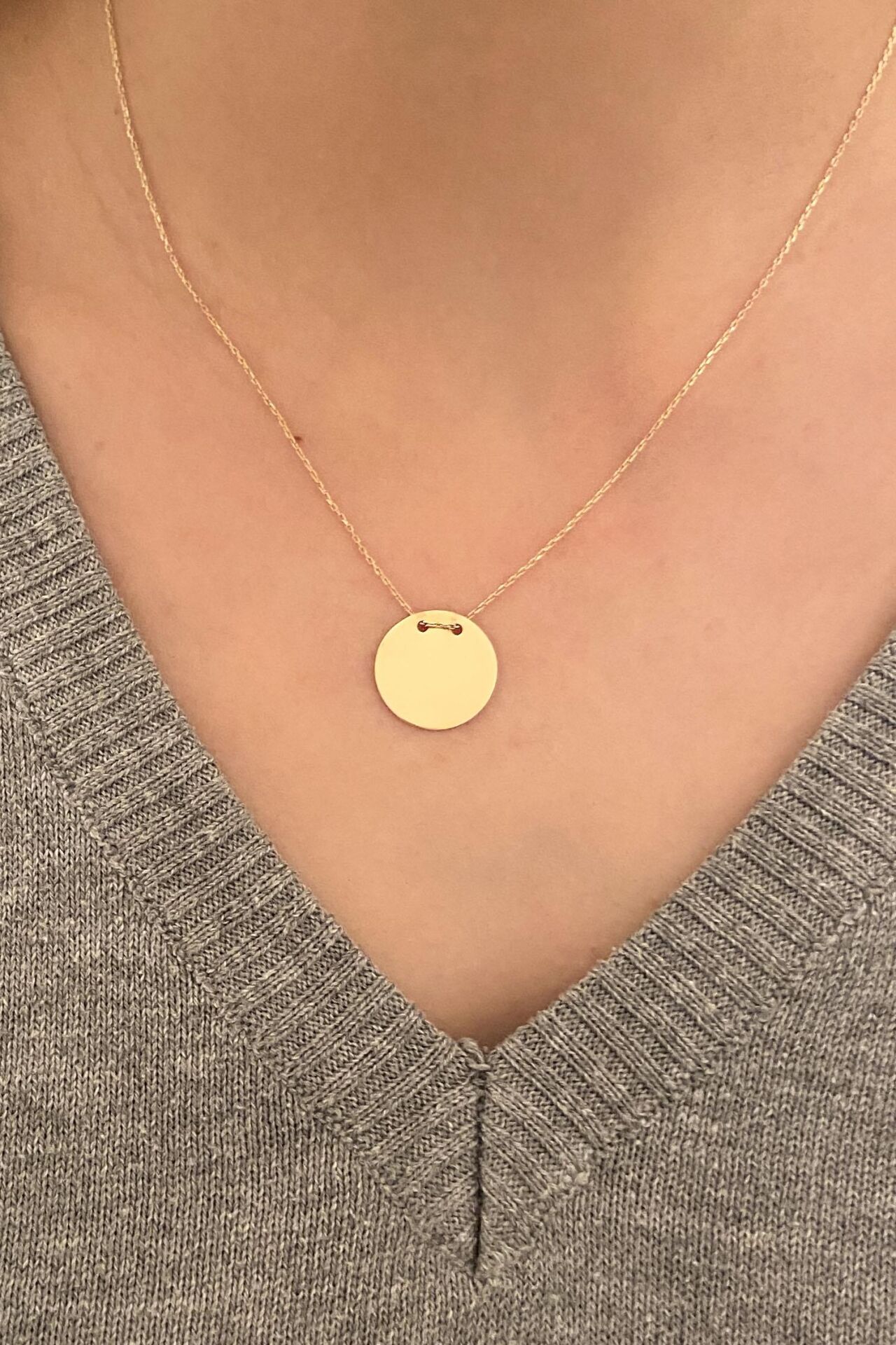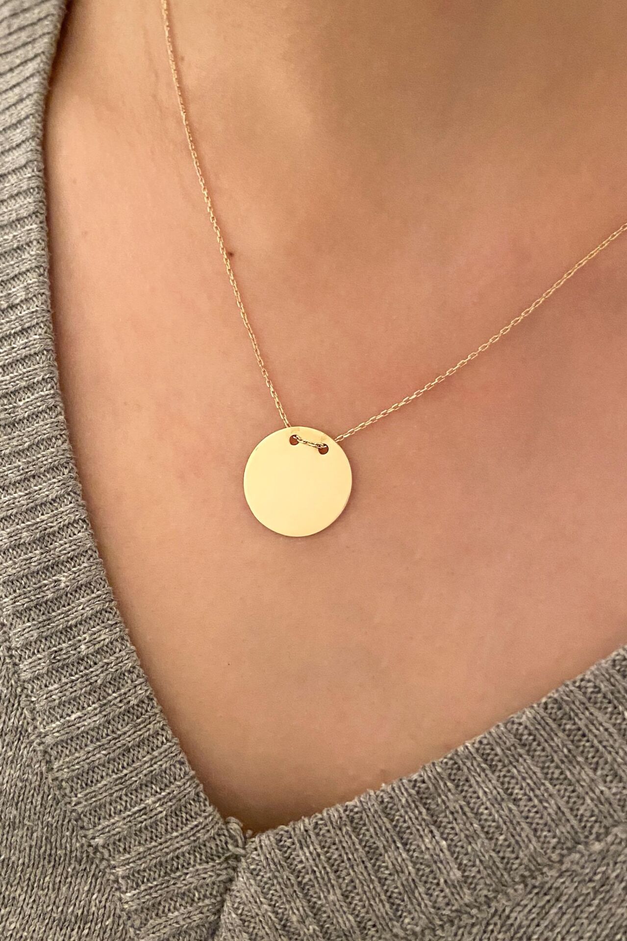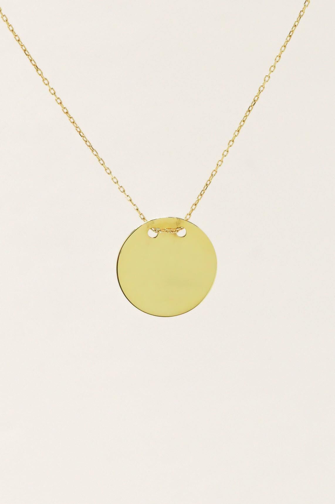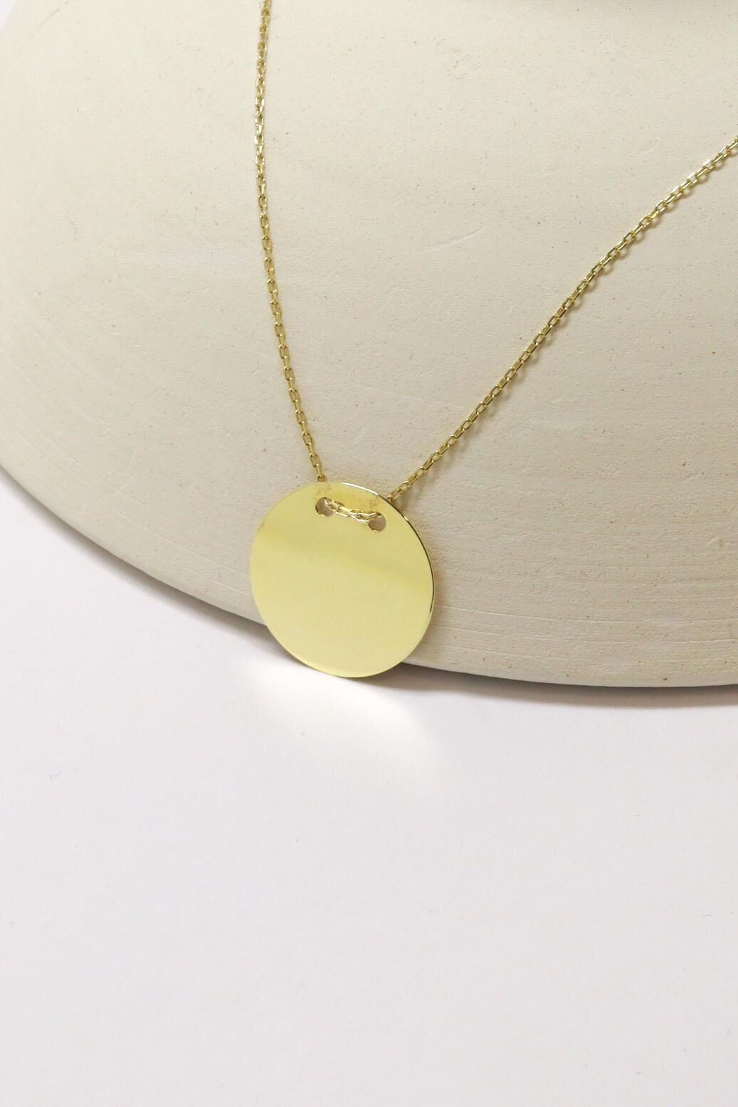 1.6 cm Çaplı Yuvarlak Plaka Kolye 14 Ayar Sarı Altın