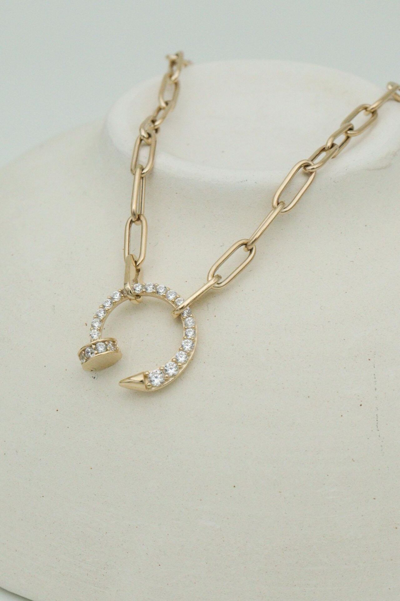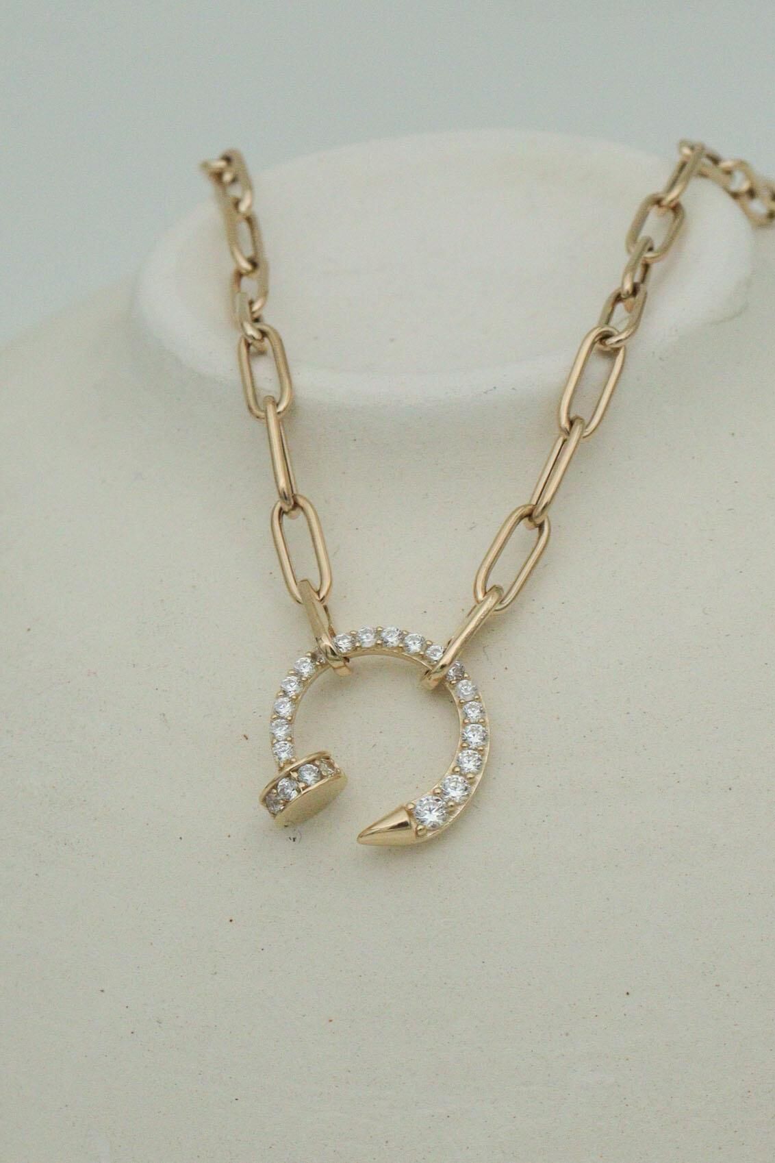 14 Ayar Altın Ataç Zincirli Taşlı Çivi Kolye