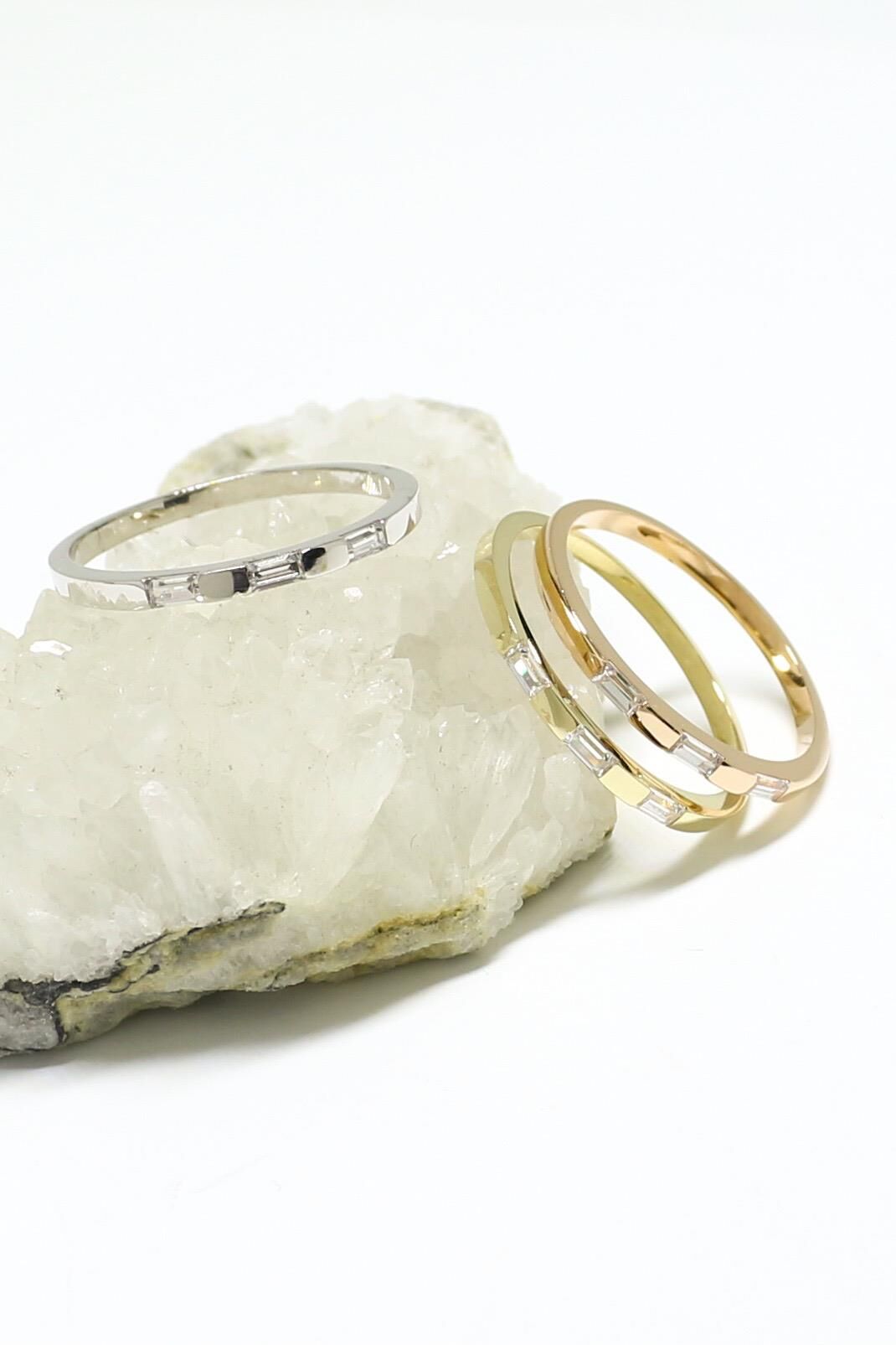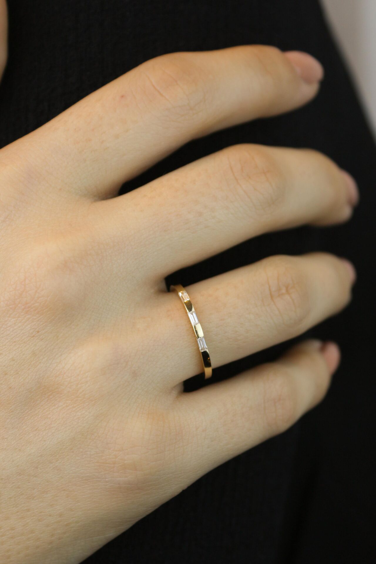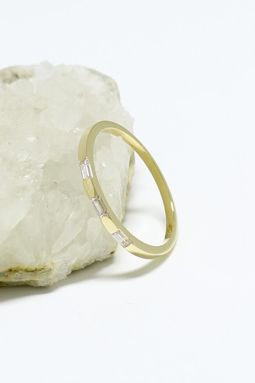 Aralıklı Üç Baget İnce Yüzük 14 Ayar Sarı Altın