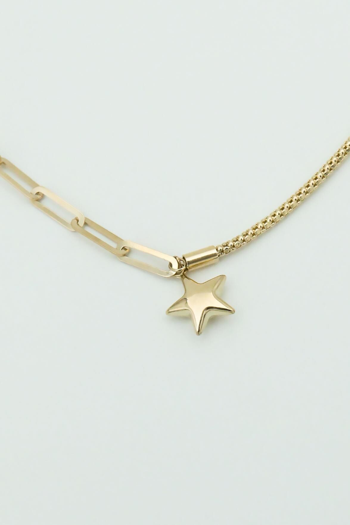 Ataç&İp Zincirli Bombeli Yıldız Charmlı 14 Ayar Altın Bileklik