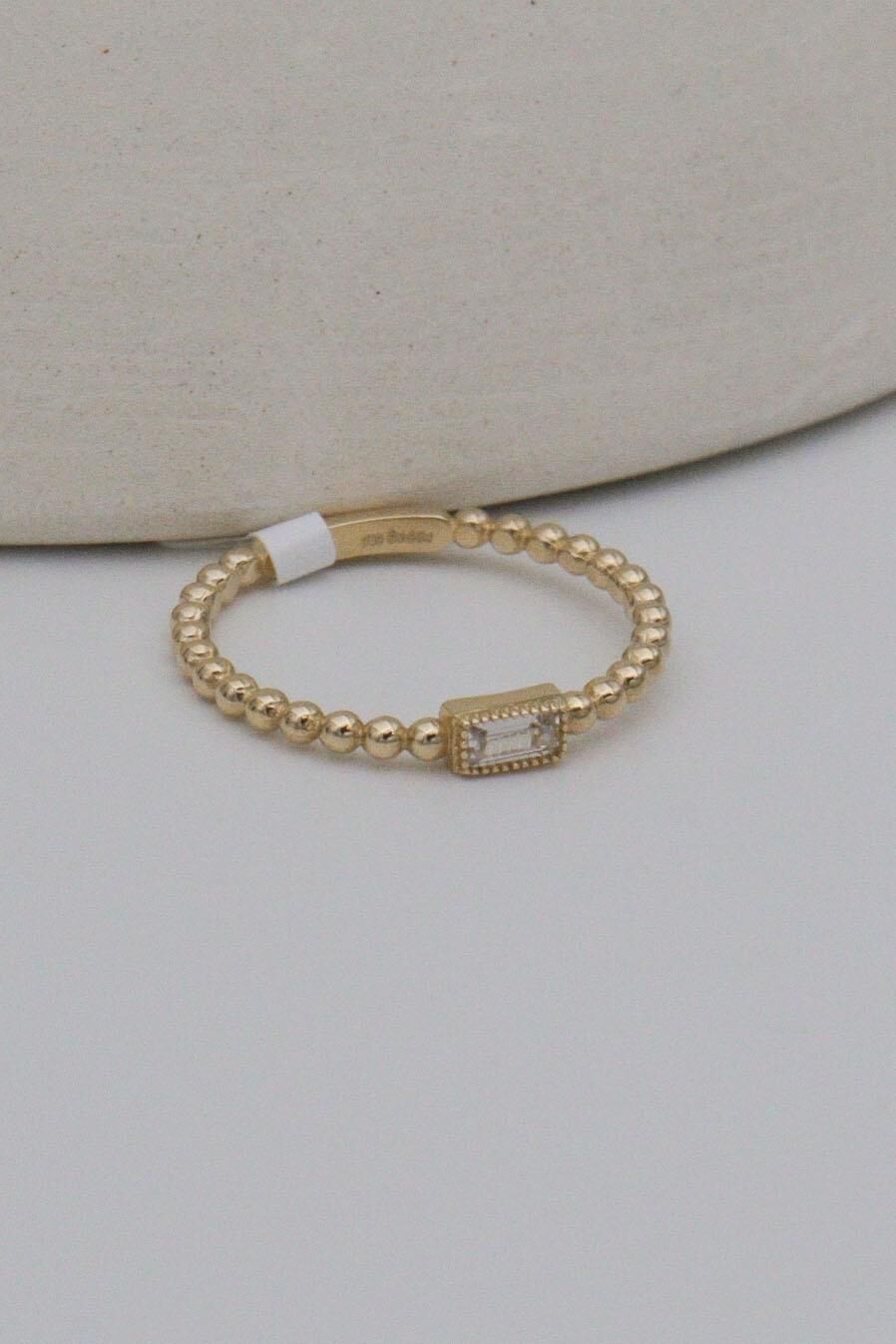 Baget Taşlı 14 Ayar Altın Tırnak Makası Minimal Yüzük