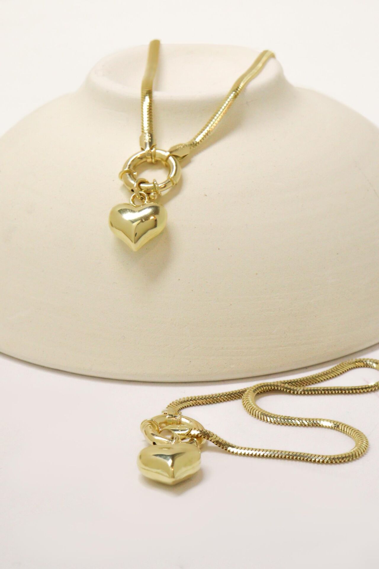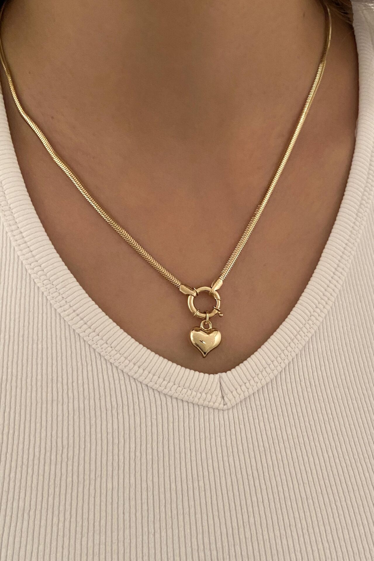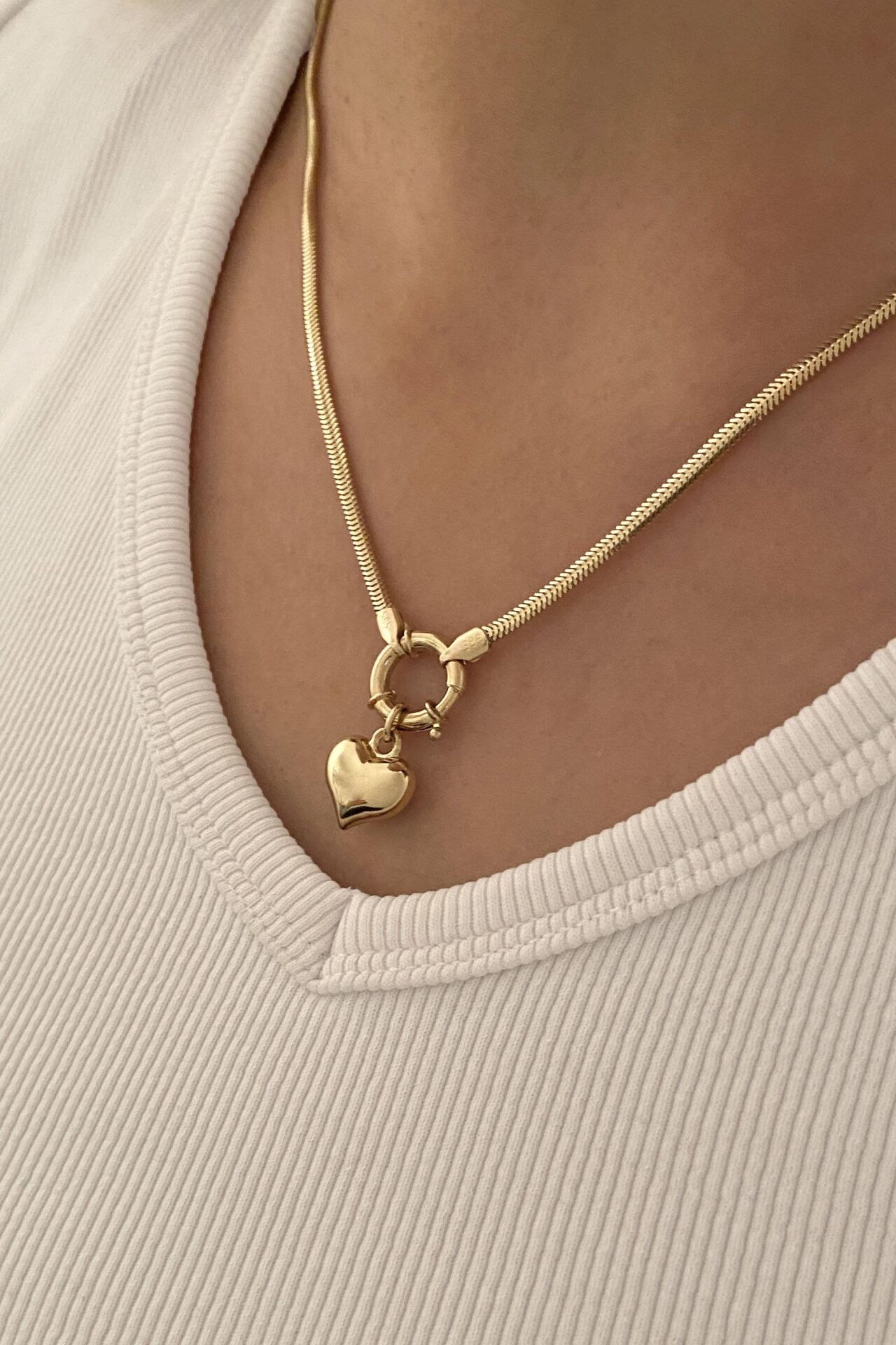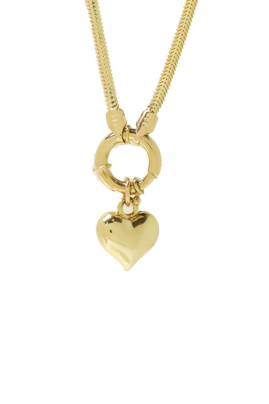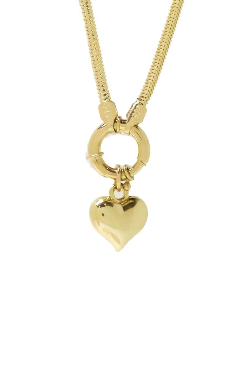 Balık Sırtı Zincir Halka Kapatmalı Kalp Sallantılı 14 Ayar Sarı Altın Kolye