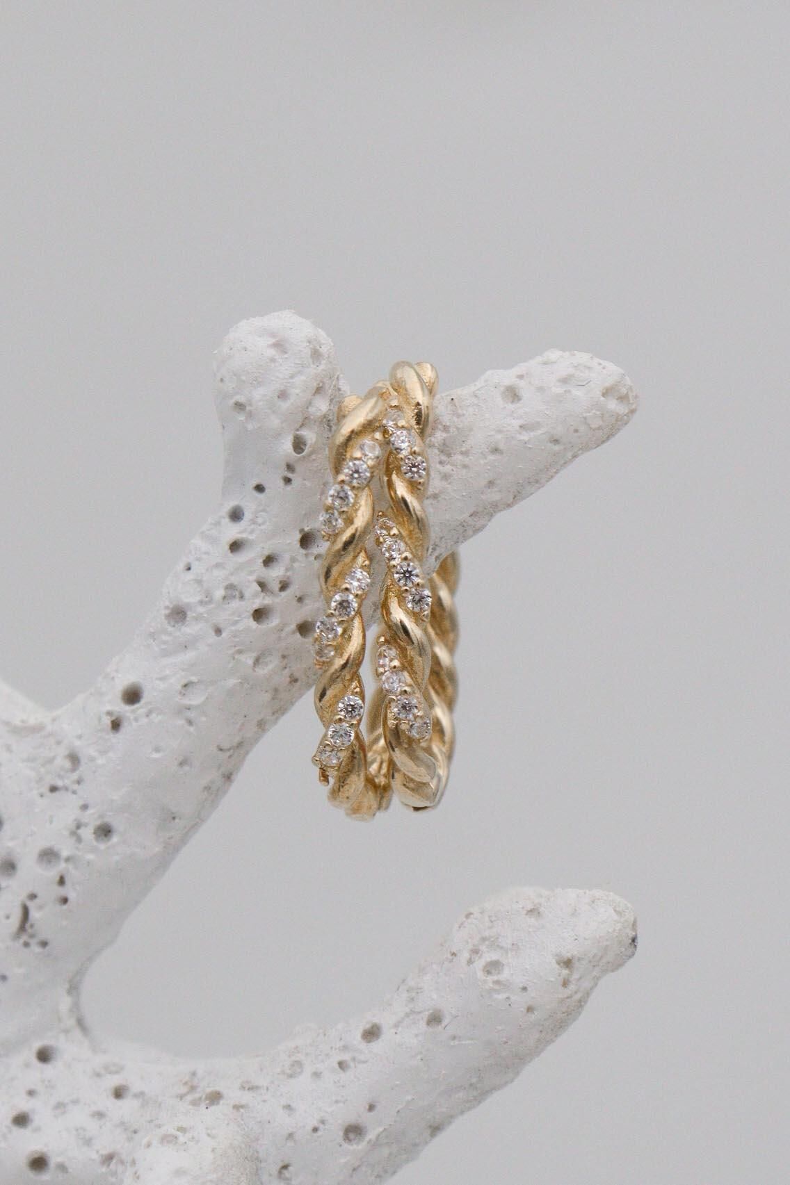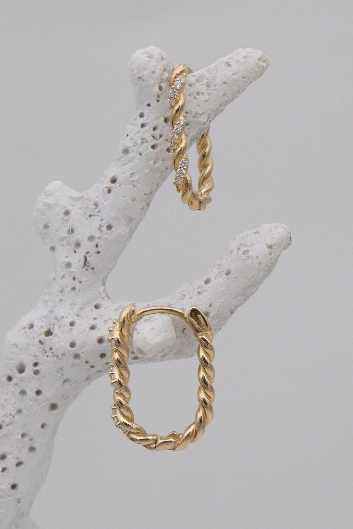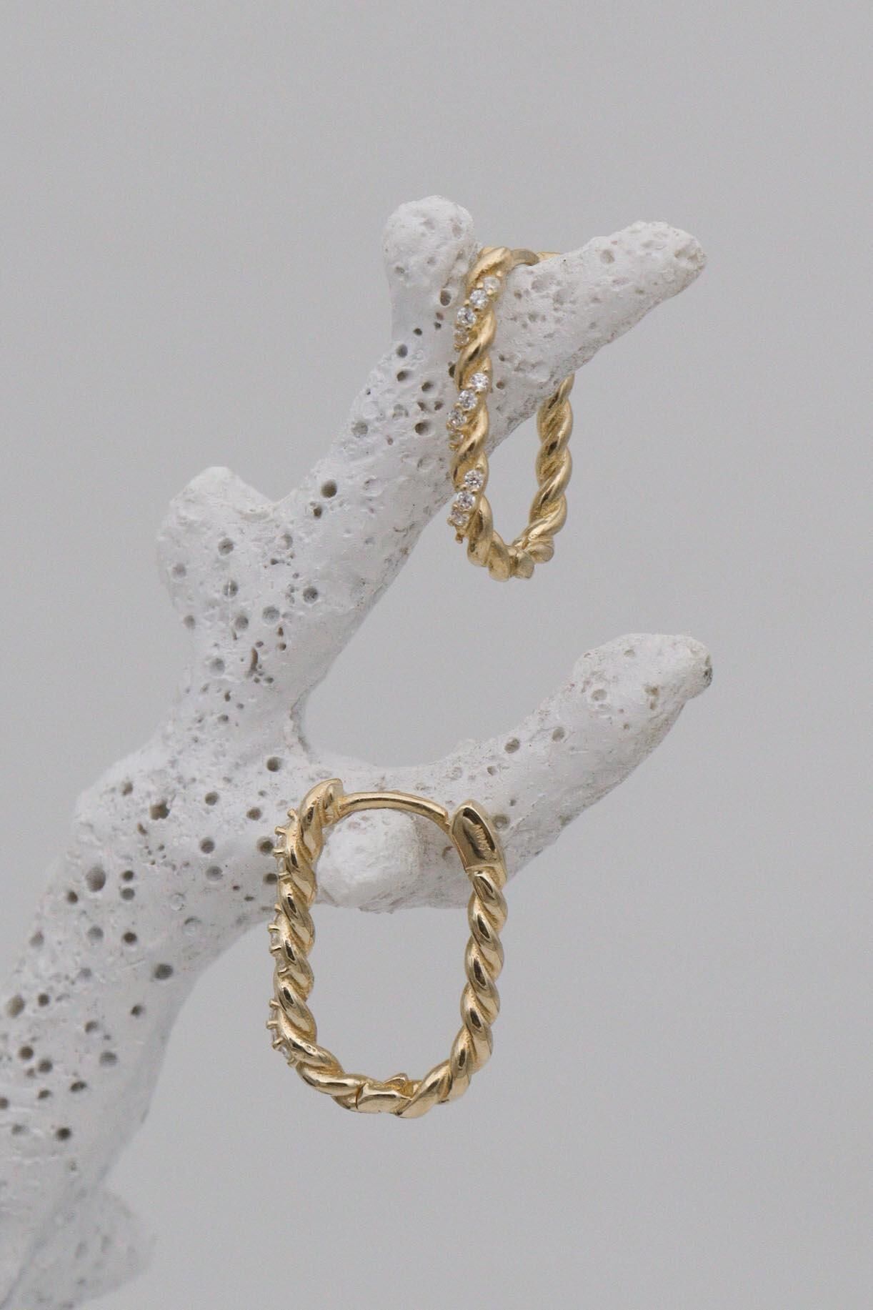 Burgulu Taşlı 14 Ayar Halka Küpe