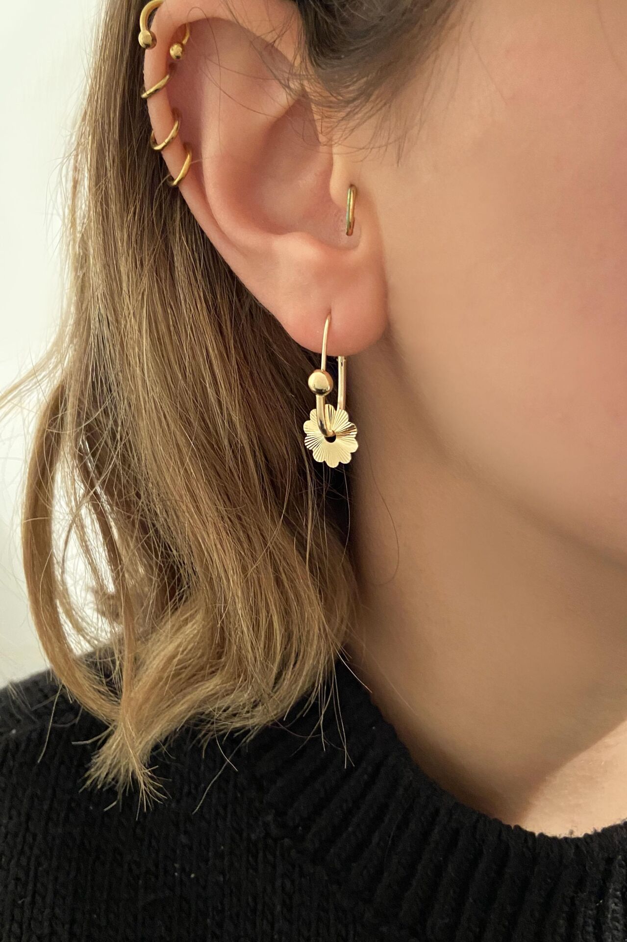 Çiçek Sallantılı Büyük Arnavut 14 Ayar Sarı Altın Halka Küpe