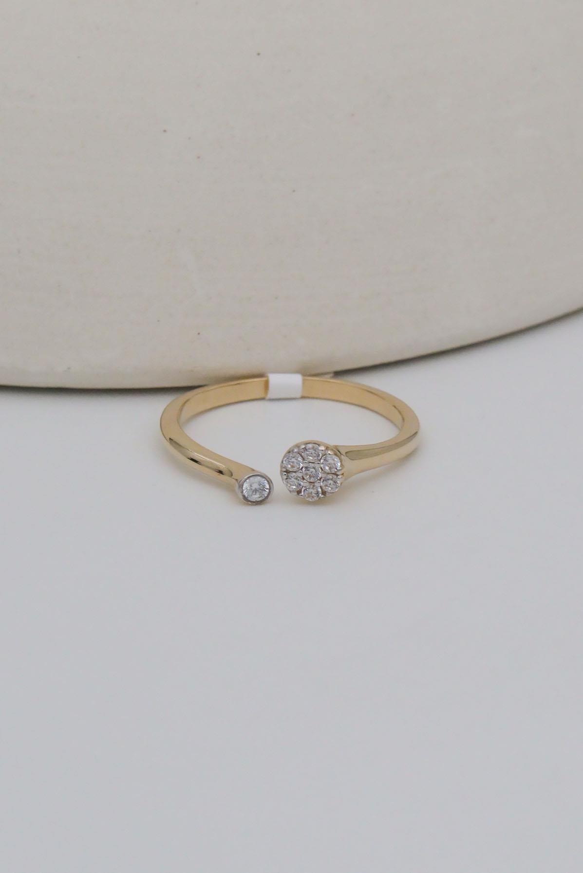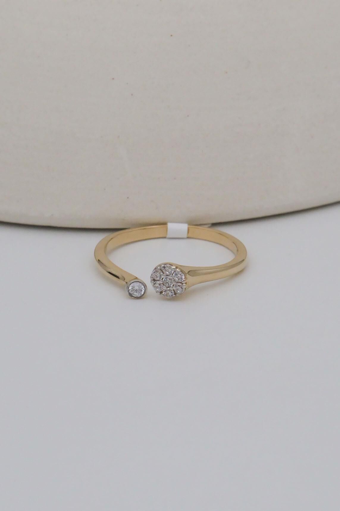 Çift Tarafı Taşlı Ortası Açık 14 Ayar Altın Yüzük