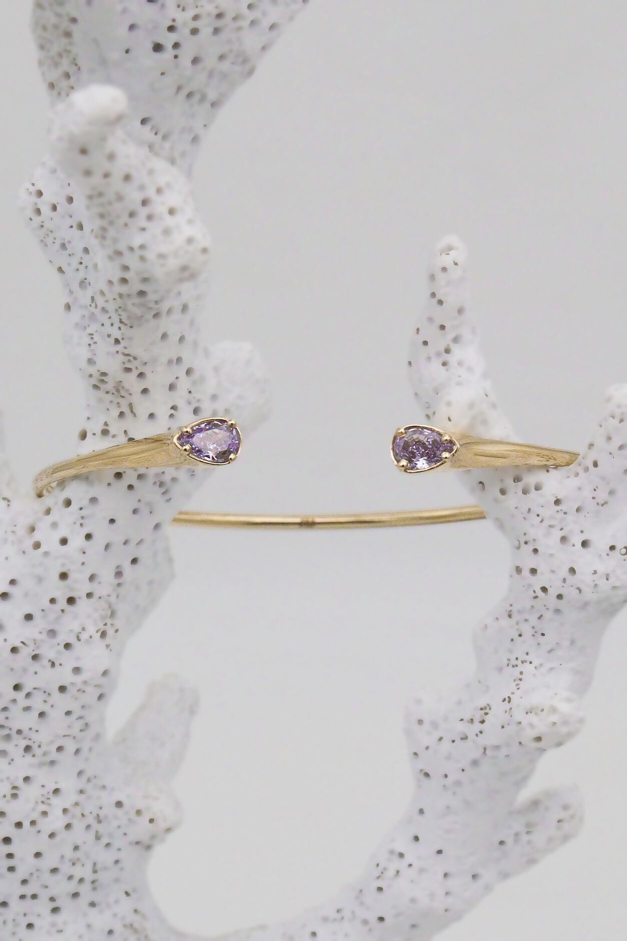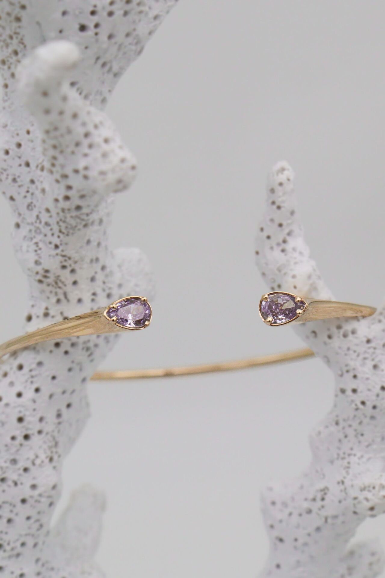 Damla Ametist Taşlı Elastik Kelepçe 14 Ayar Altın