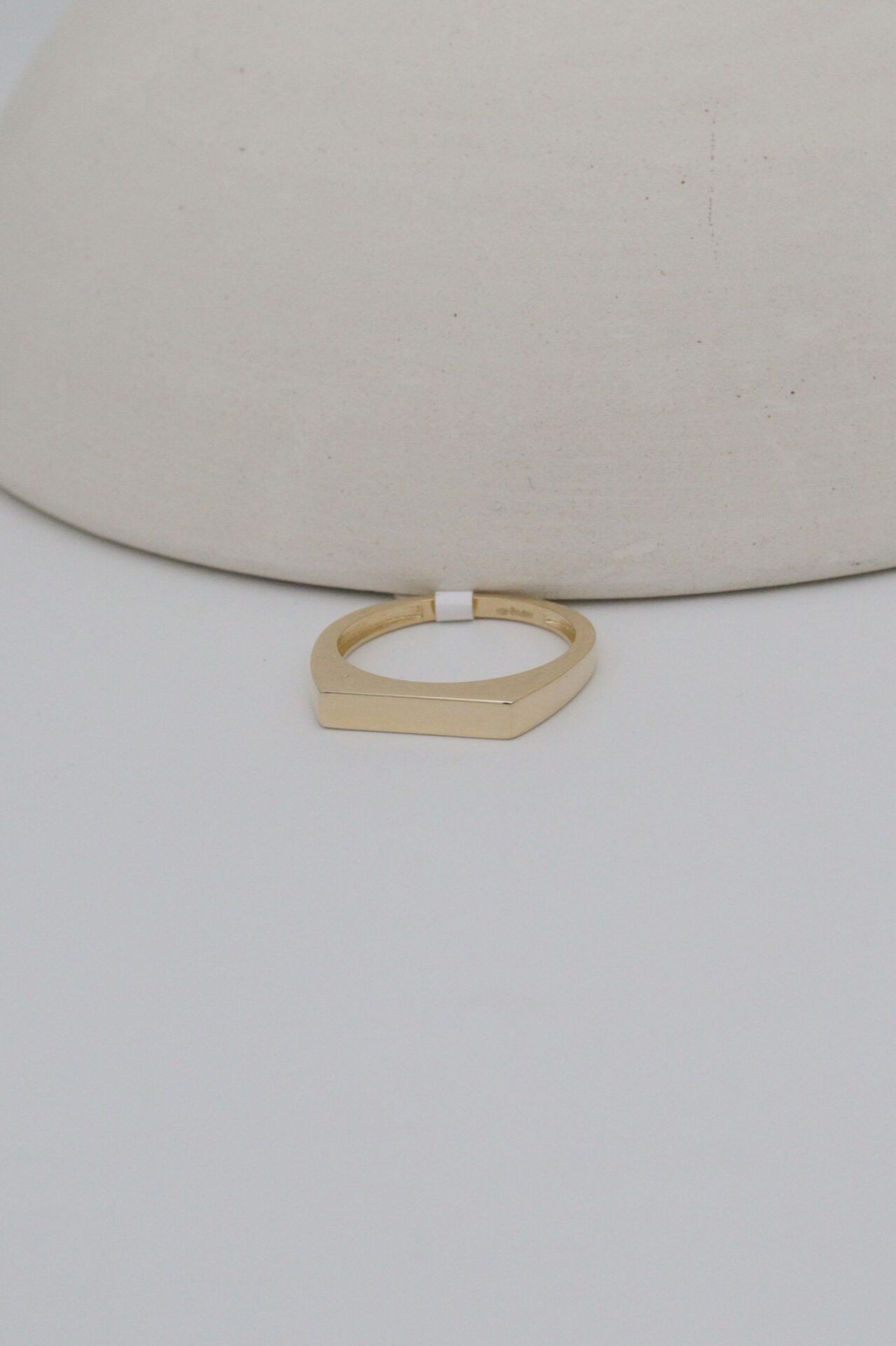 Düz Köşeli Dikdörtgen 14 Ayar Altın Şövalye Yüzük