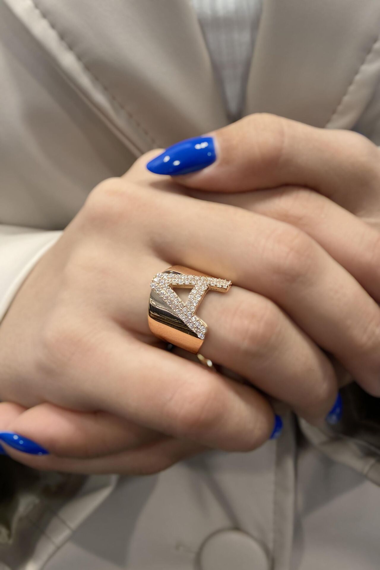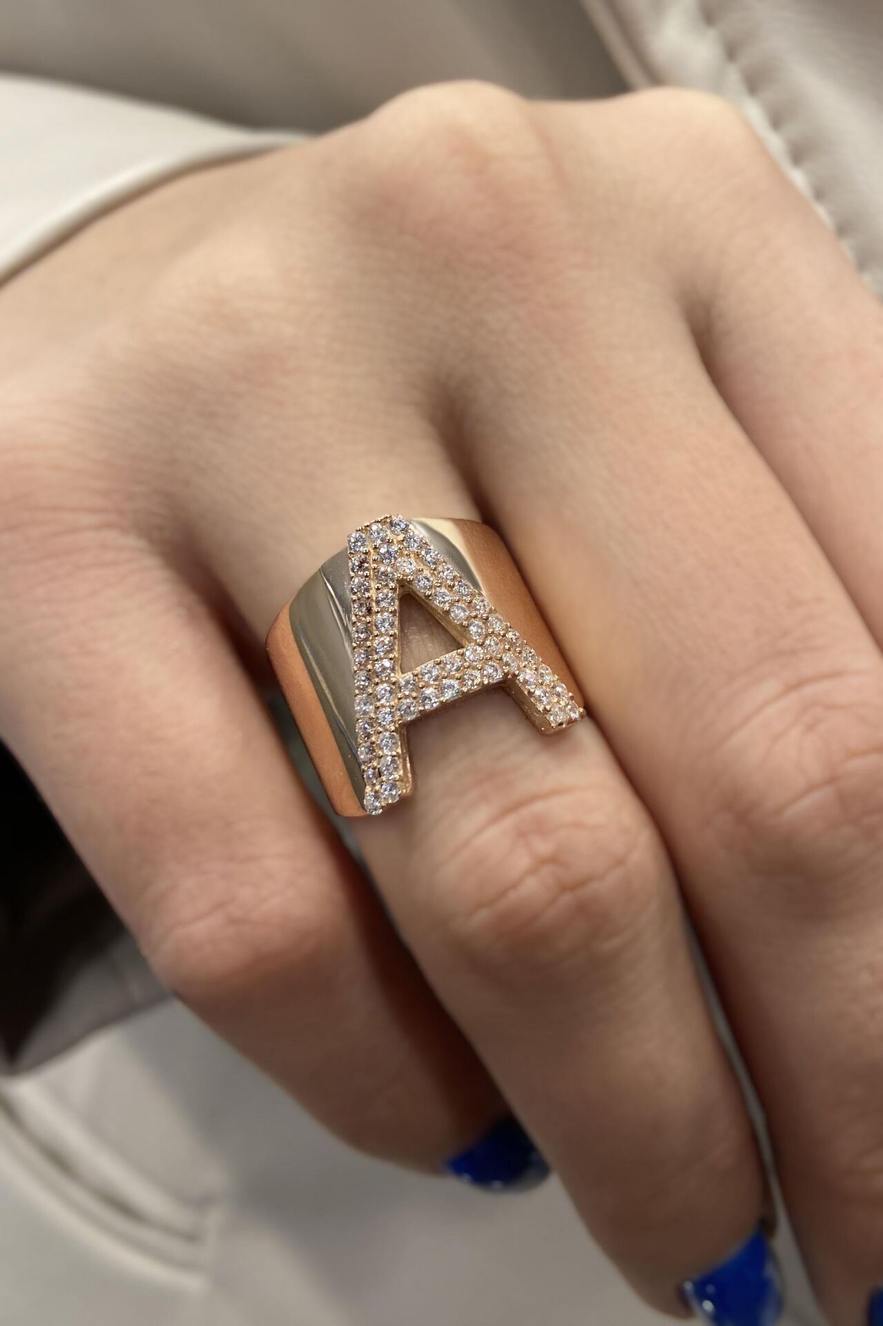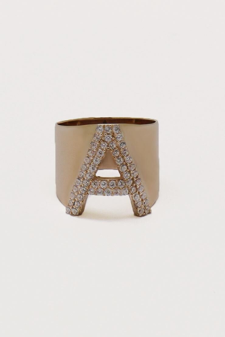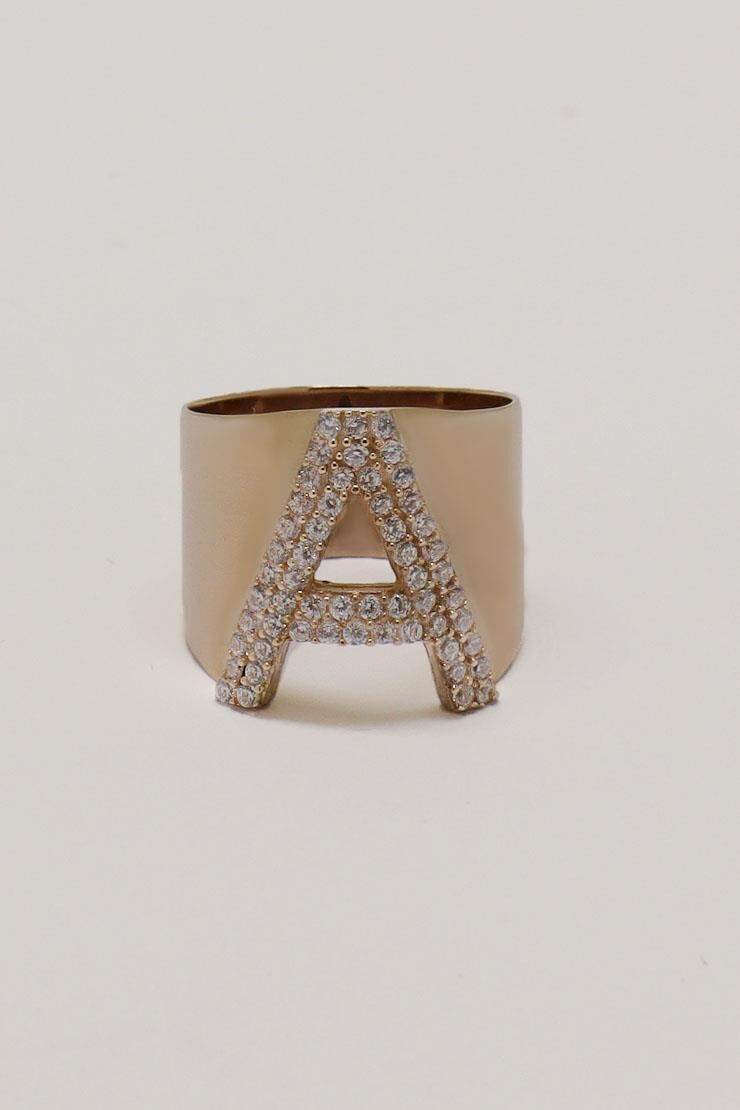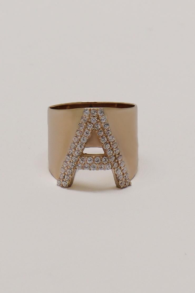 Harf Yüzük İri Süzme 14 Ayar Rose Altın