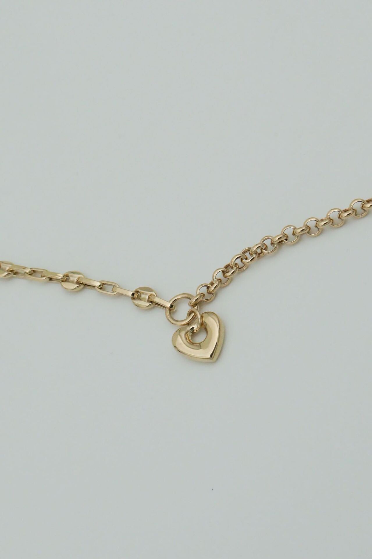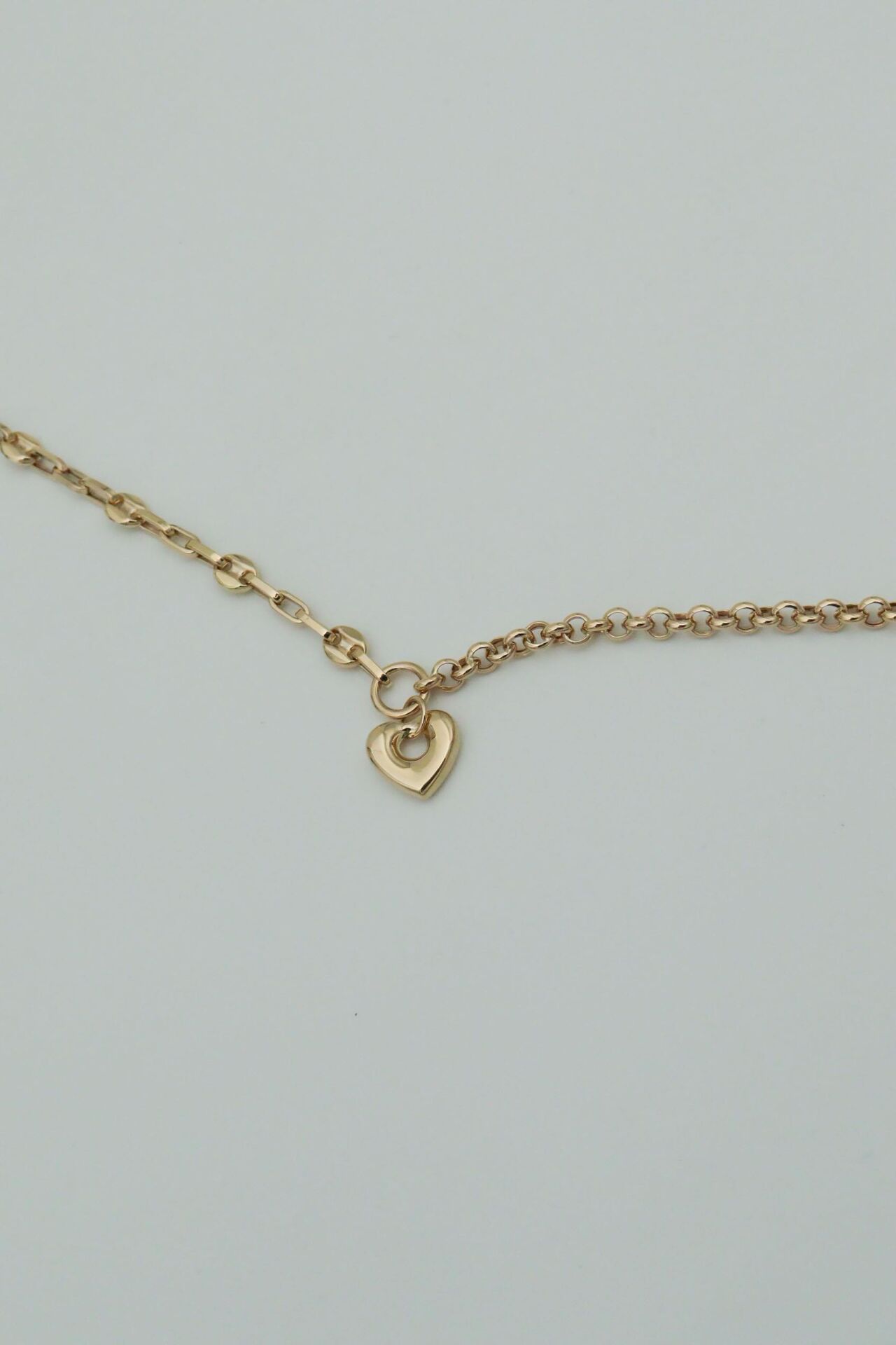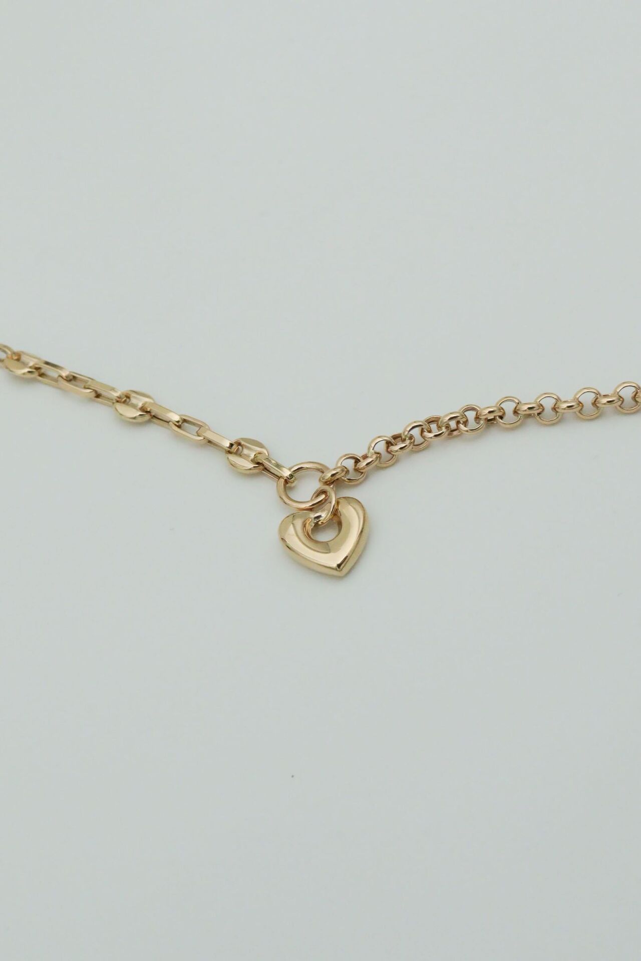 iki Farklı Zincirde Kalp Sallantılı 14 Ayar Altın