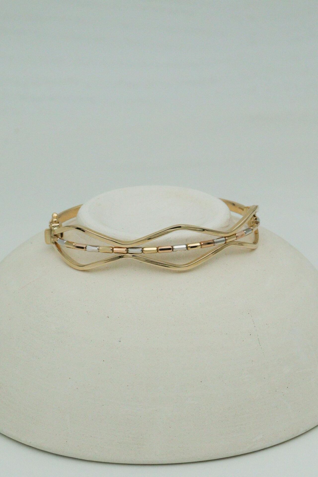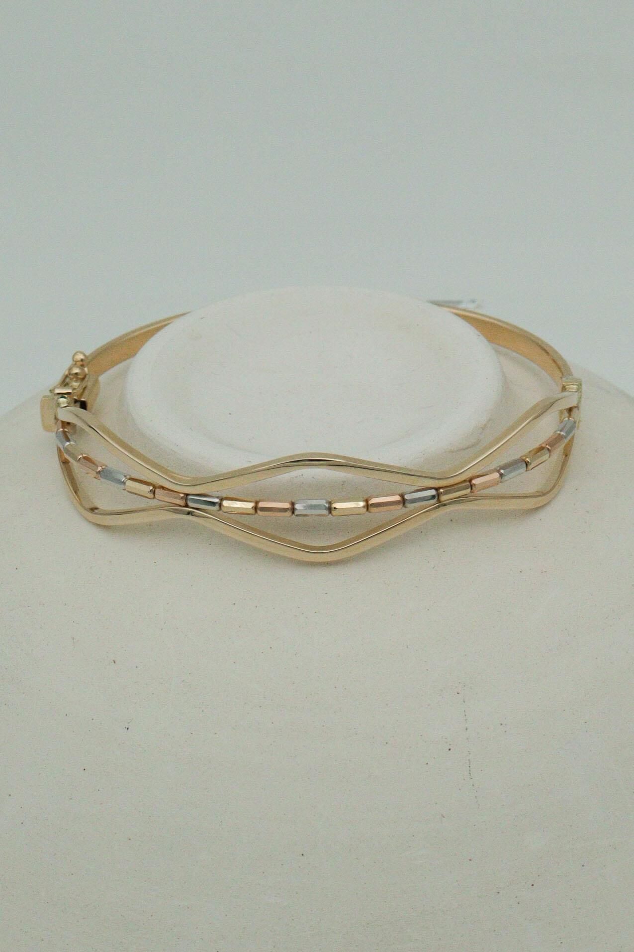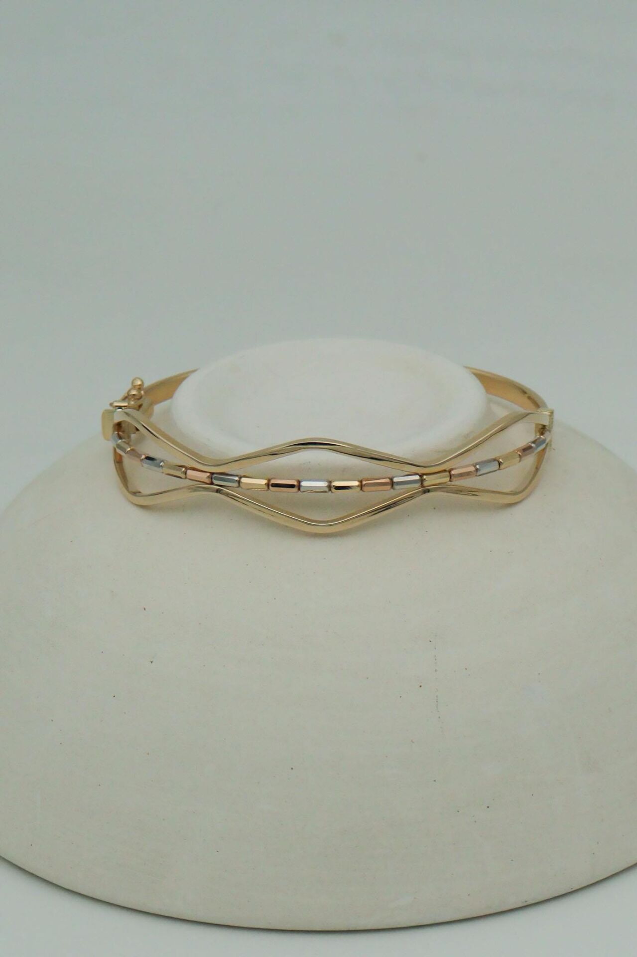 İki Sıra Dalgalı Ortası Silindir Dorikalı 14 Ayar Altın Kelepçe