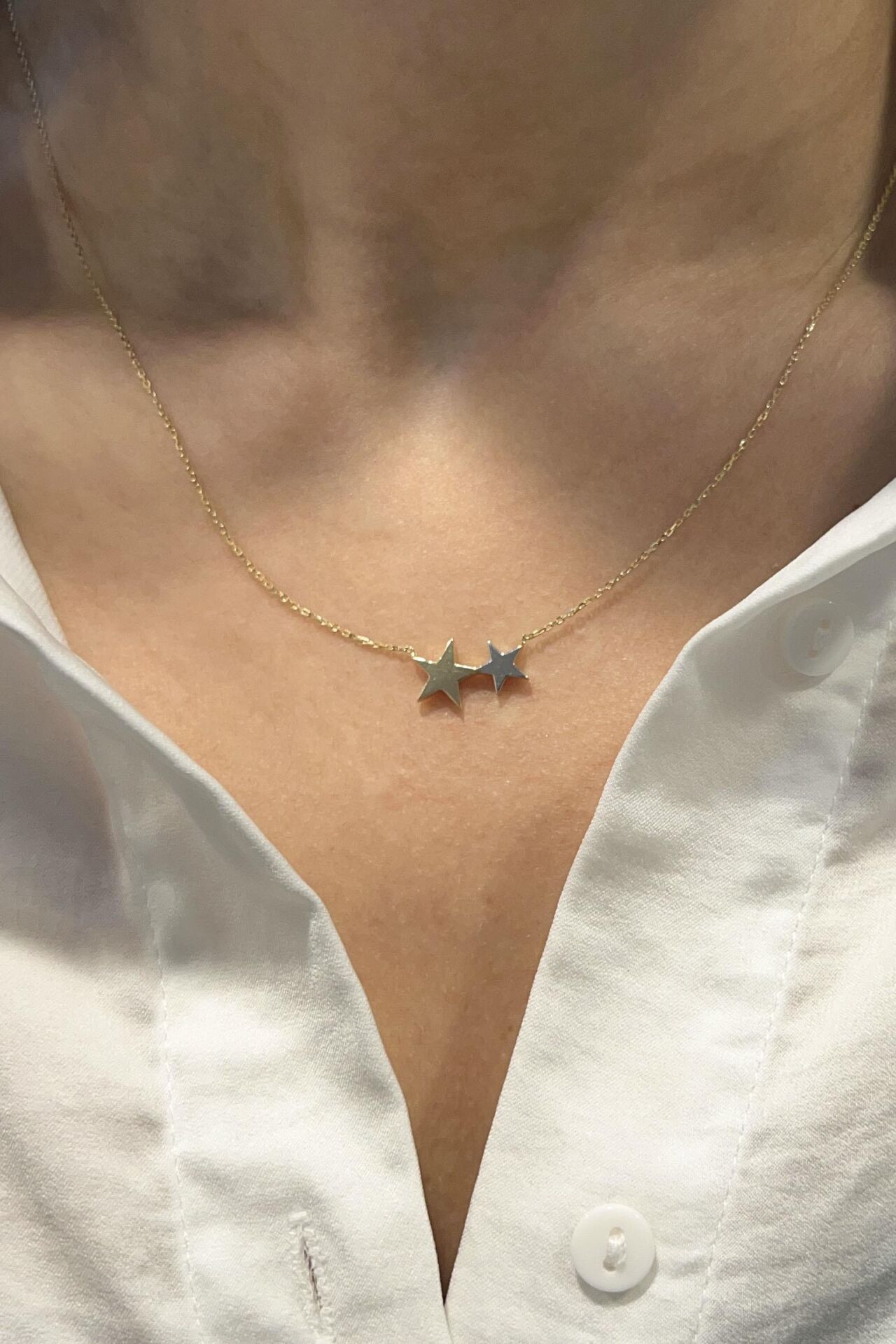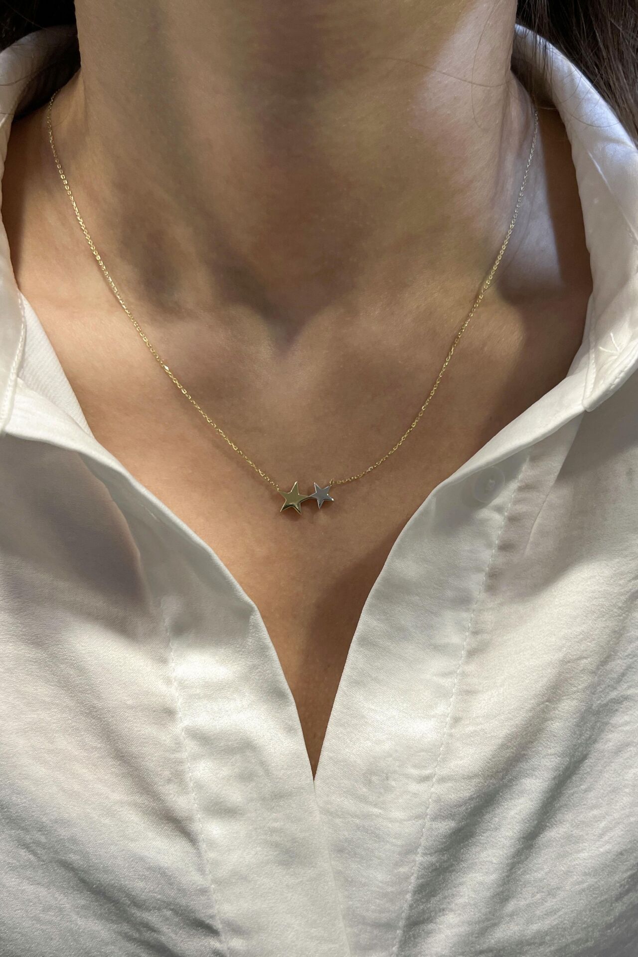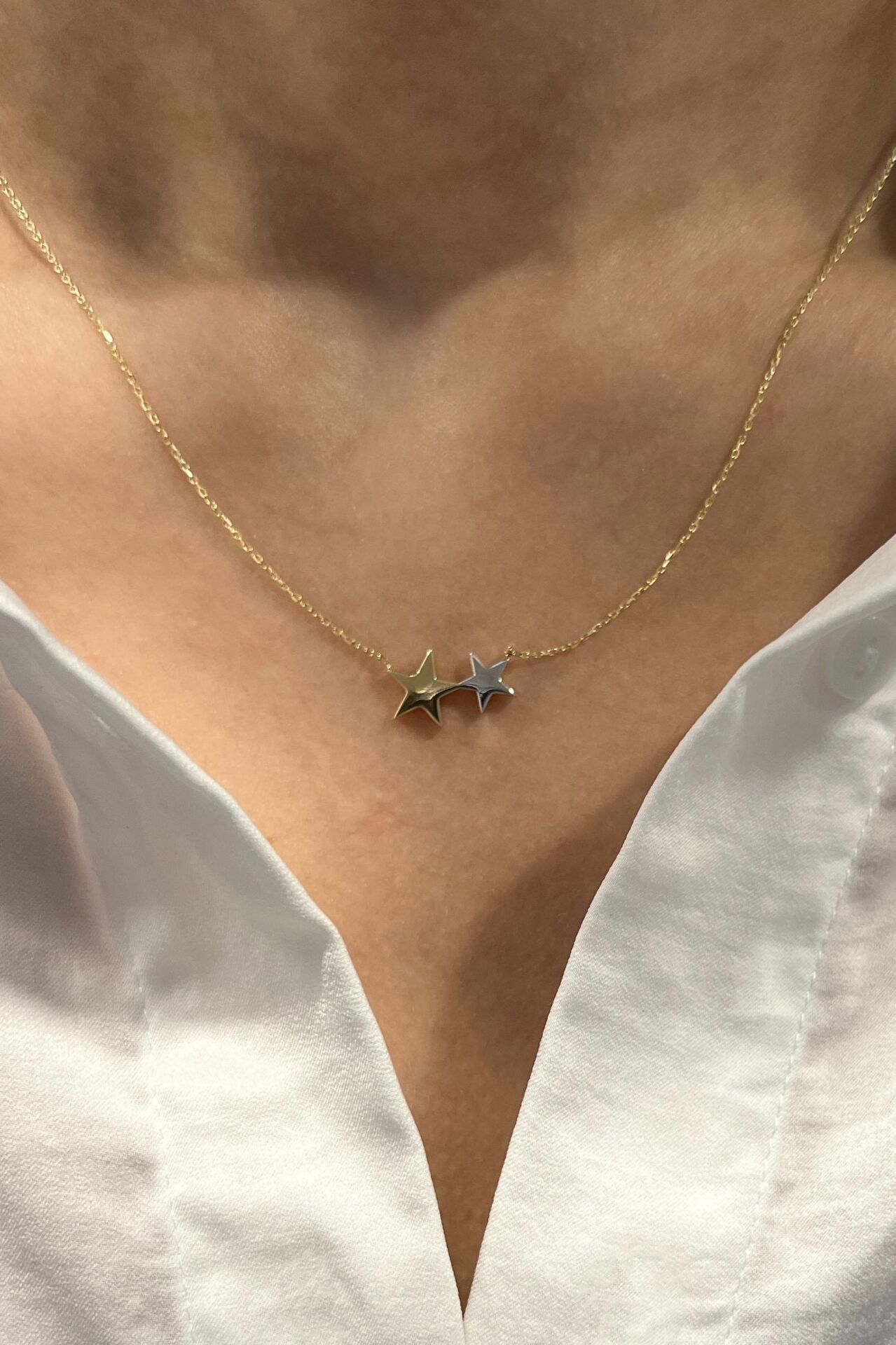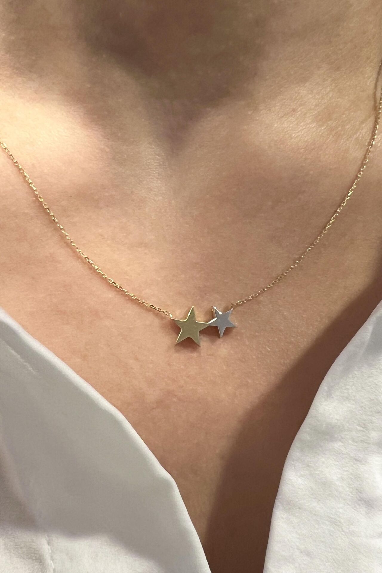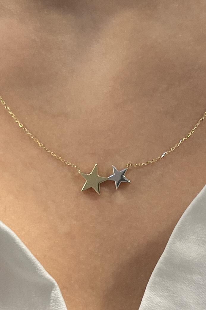 İkili Minimal Yıldız 14 Ayar Altın Kolye