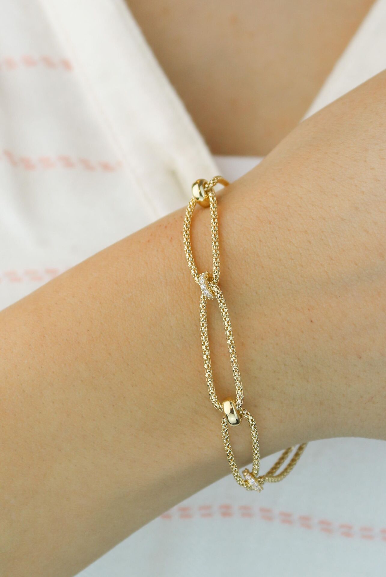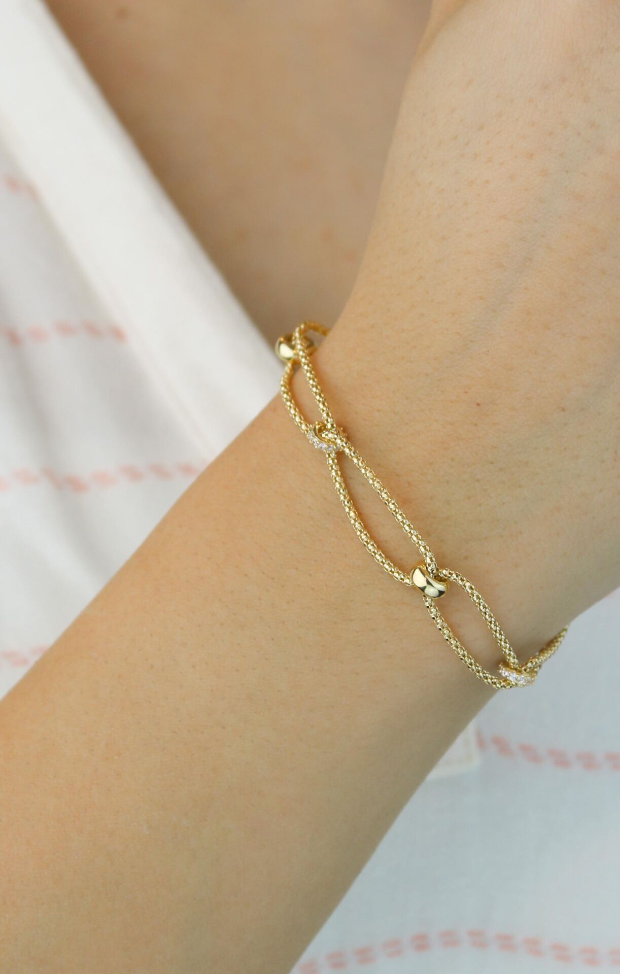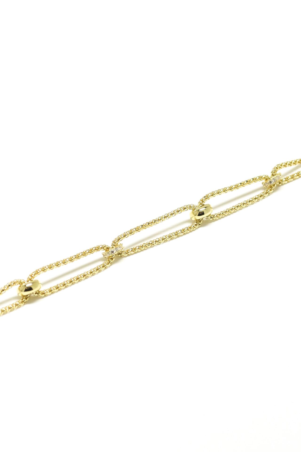 İp Zincirler Arası Taşlı-Taşsız Dönmeli Charmlı Bileklik 14 Ayar Sarı Altın Bileklik