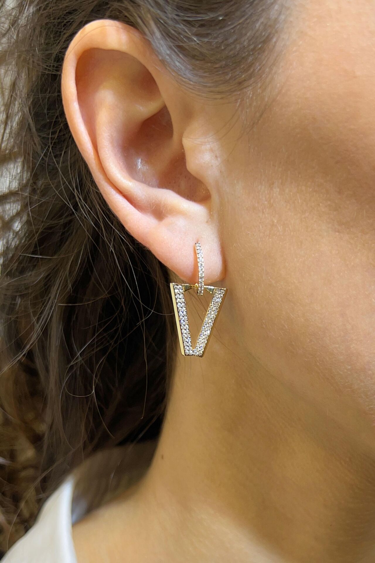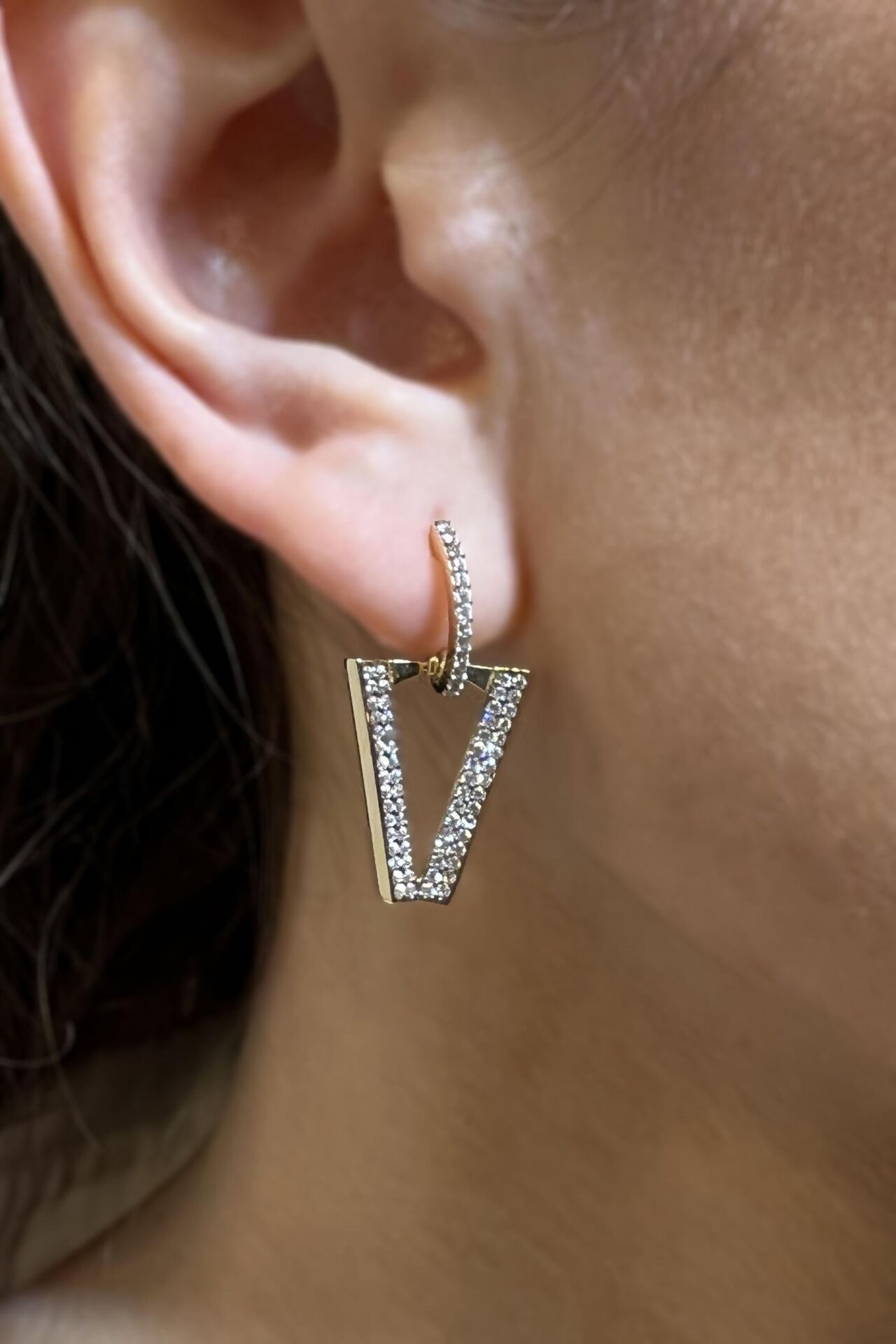 Işıltılı Üçgen Sallantılı 14 Ayar Altın Küpe