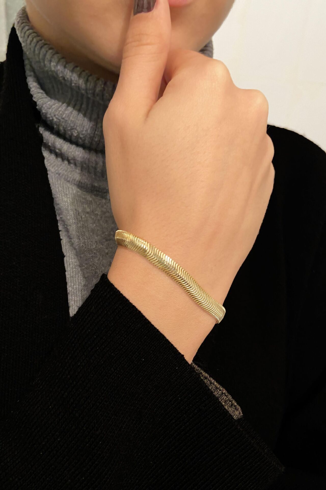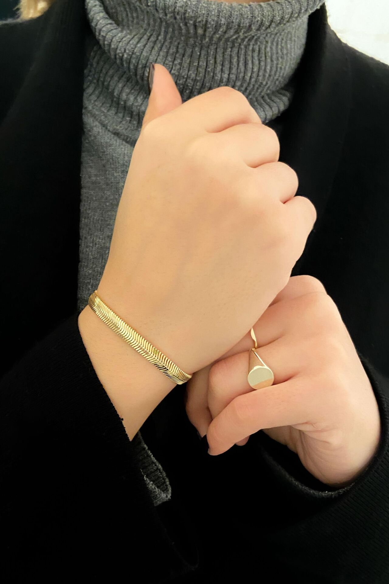 Kalın Balık Sırtı Zincir 14 Ayar Sarı Altın Bileklik