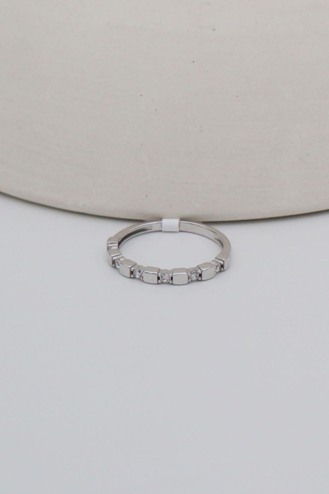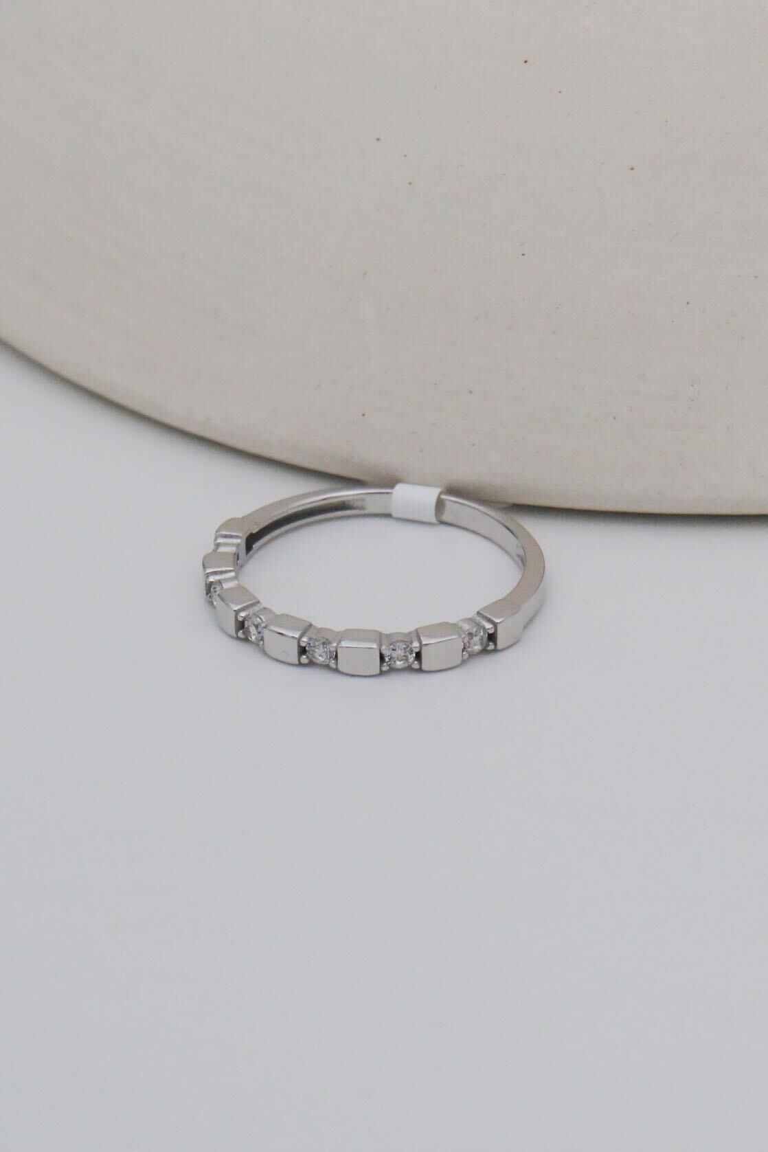Küp&Taşlı 14 Ayar Beyaz Altın Yüzük