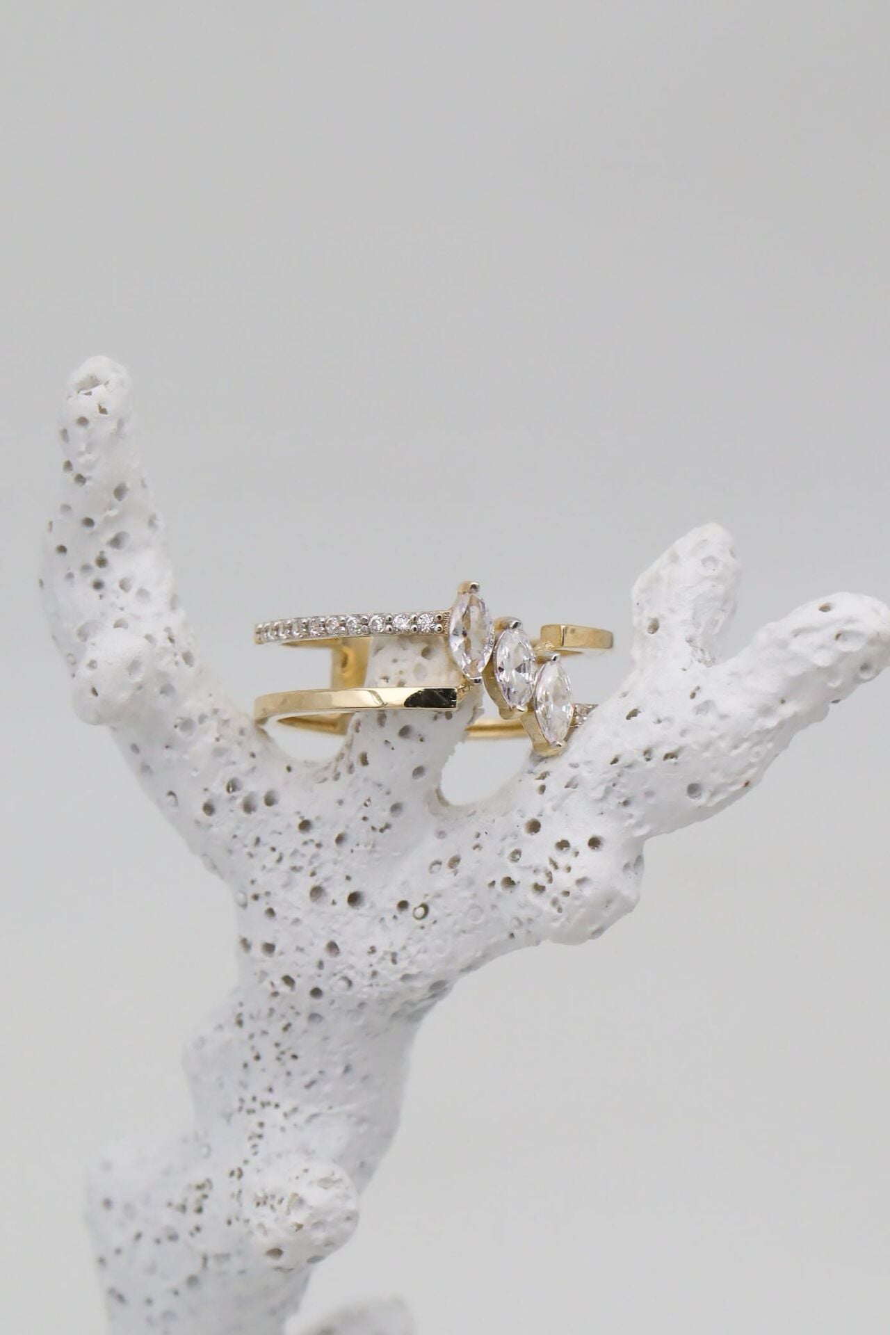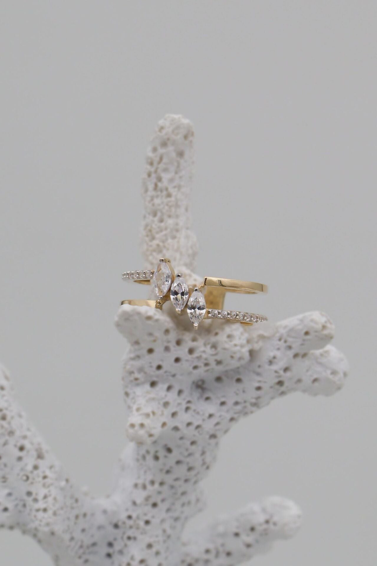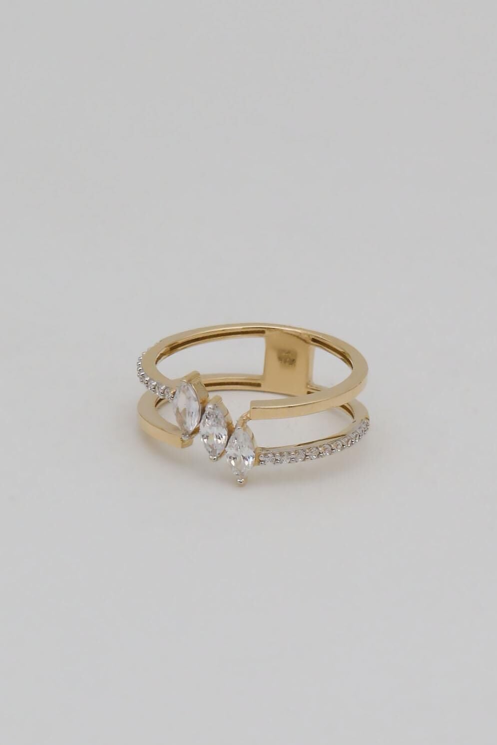 Markiz Kesim 3 Taşlı Çift Sıra 14 Ayar Altın Yüzük