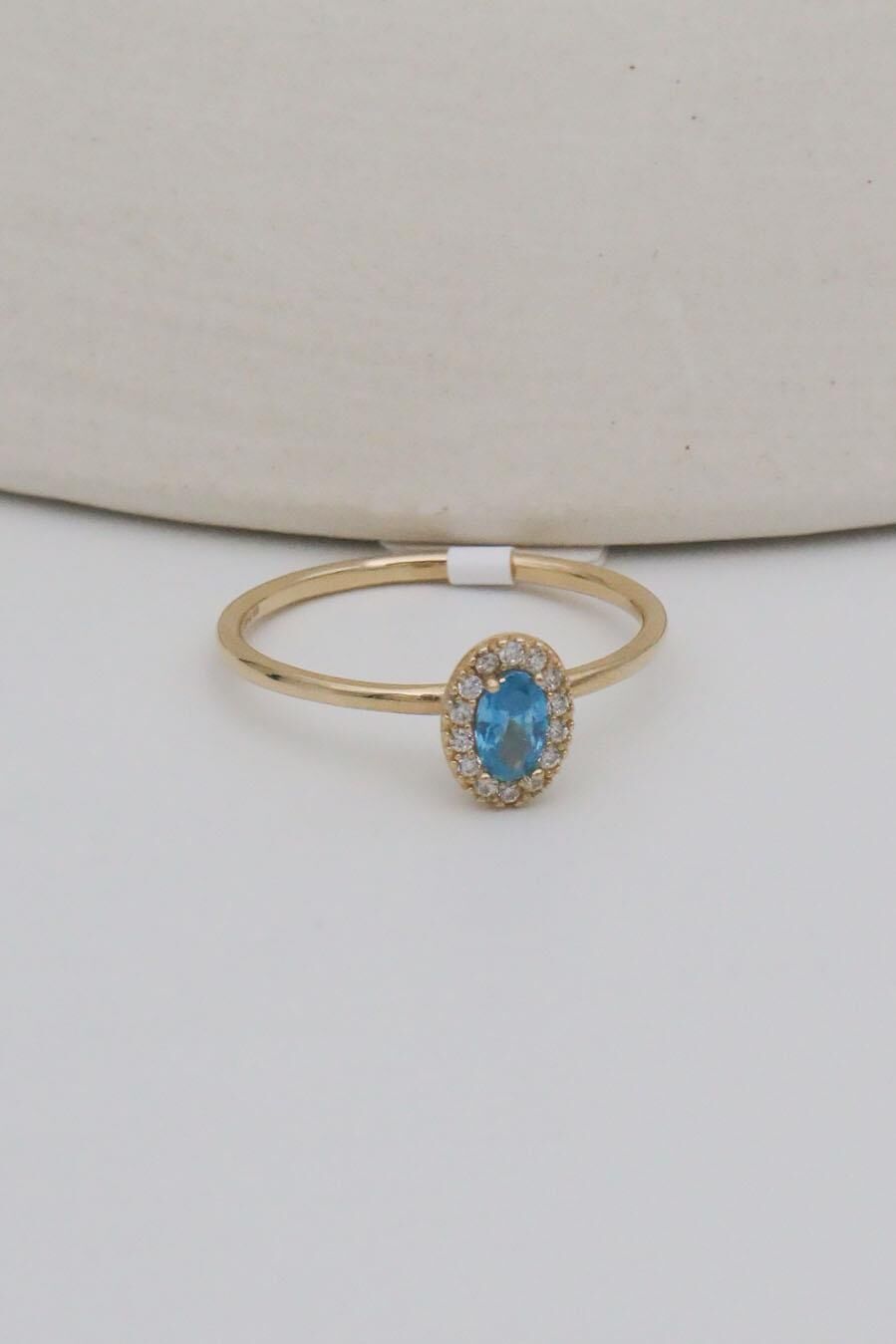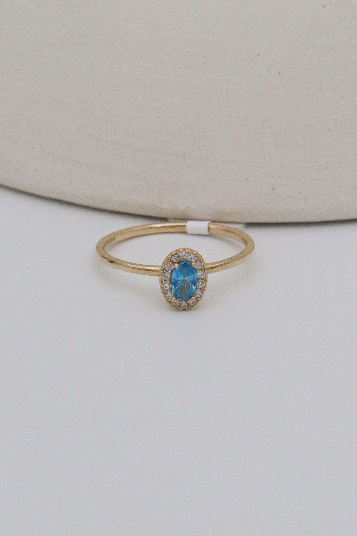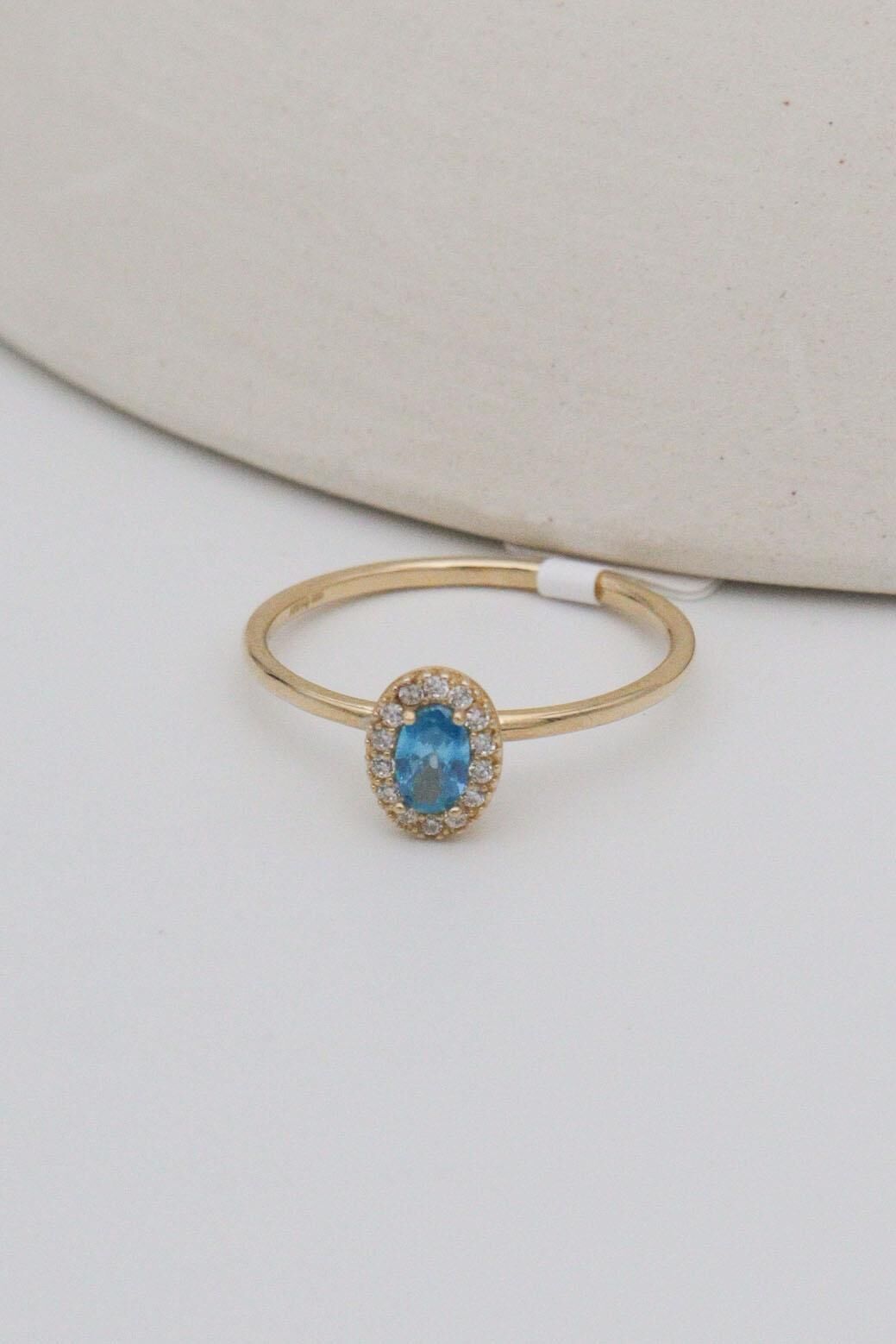 Mavi Oval Taşlı 14 Ayar Altın Minimal Yüzük