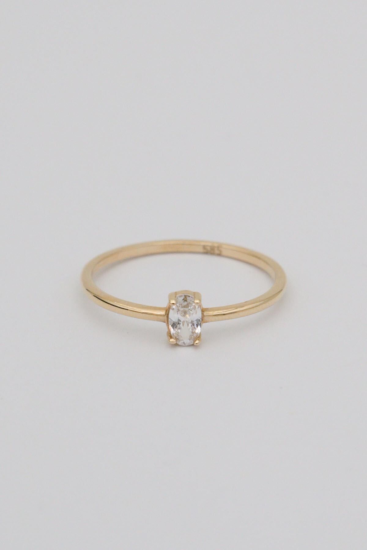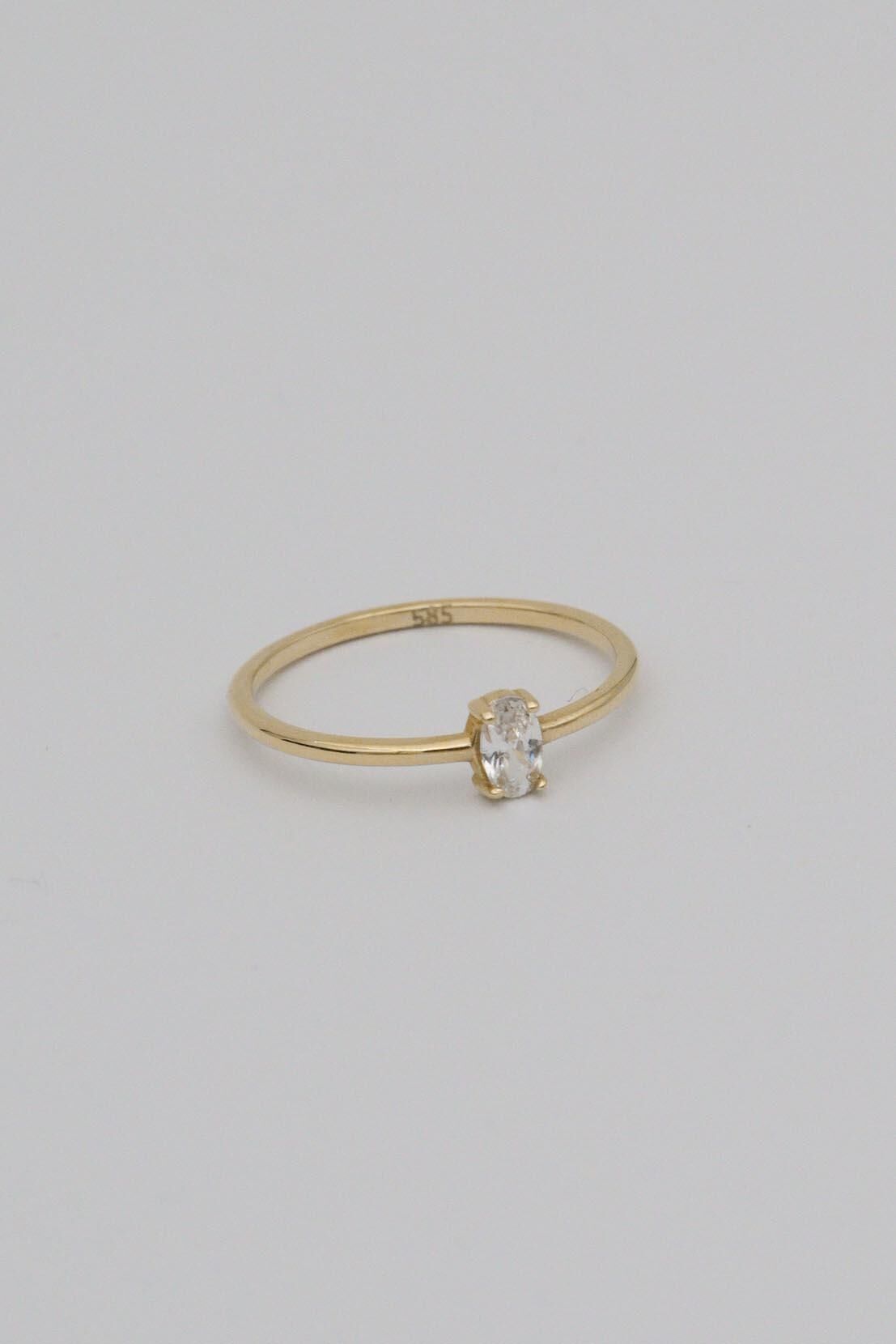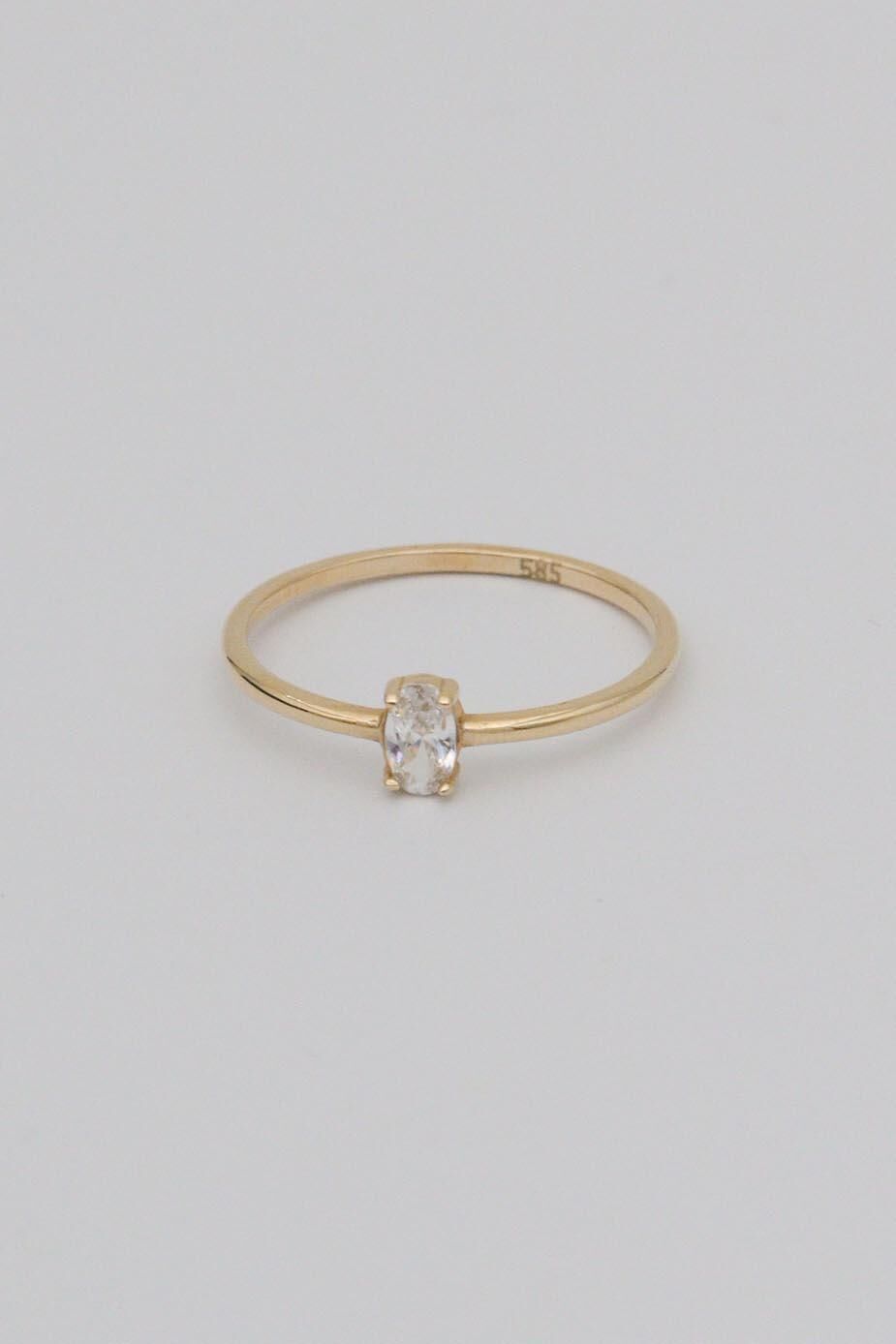 Mini Oval Tek-Taş Yüzük 14 Ayar Altın