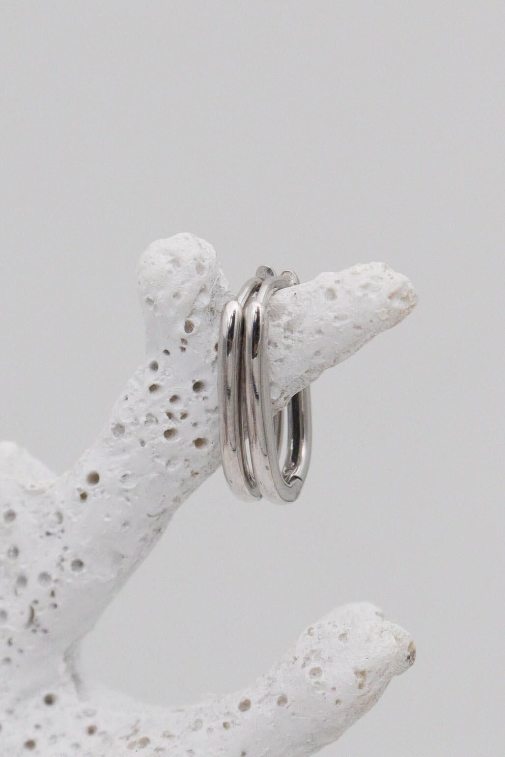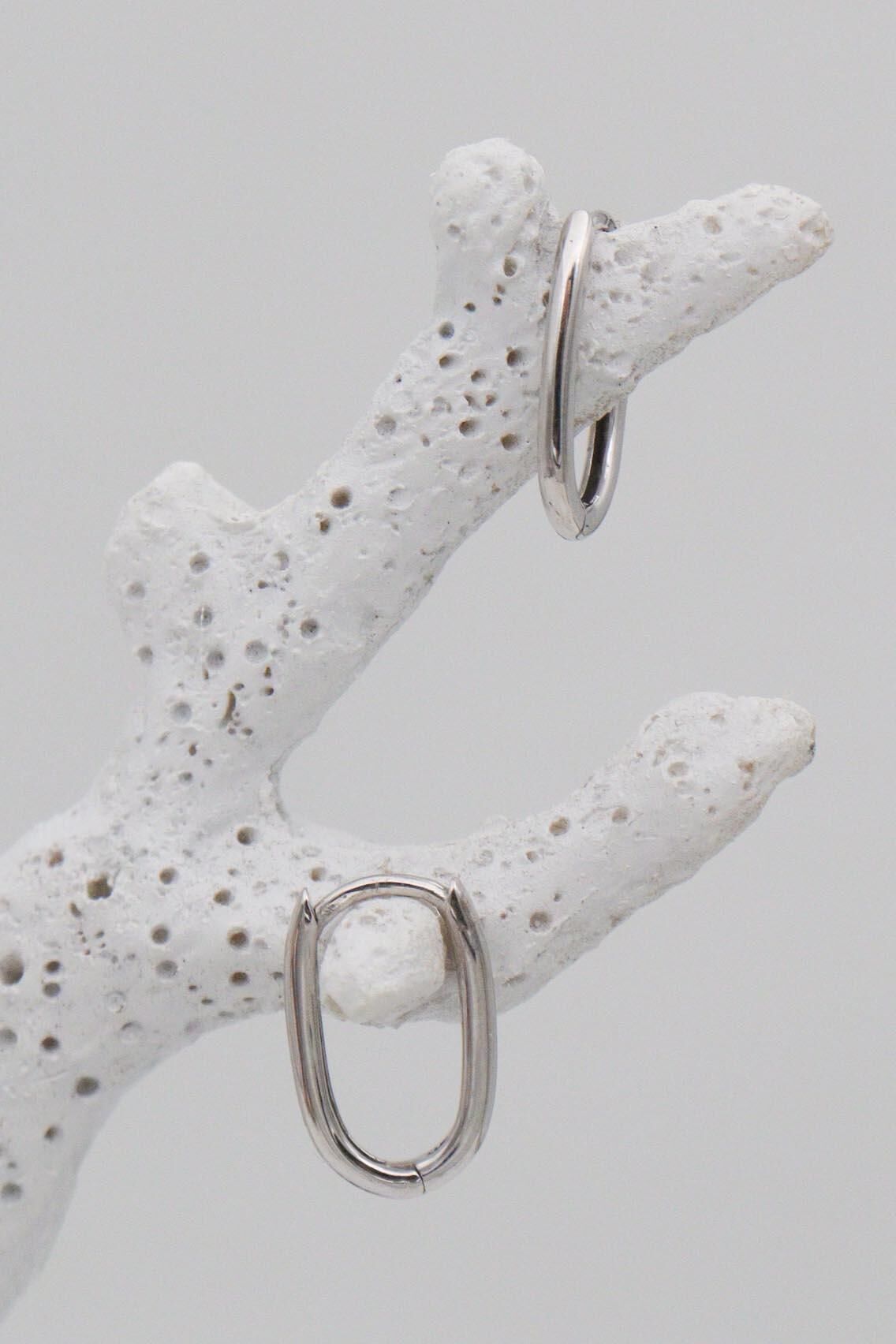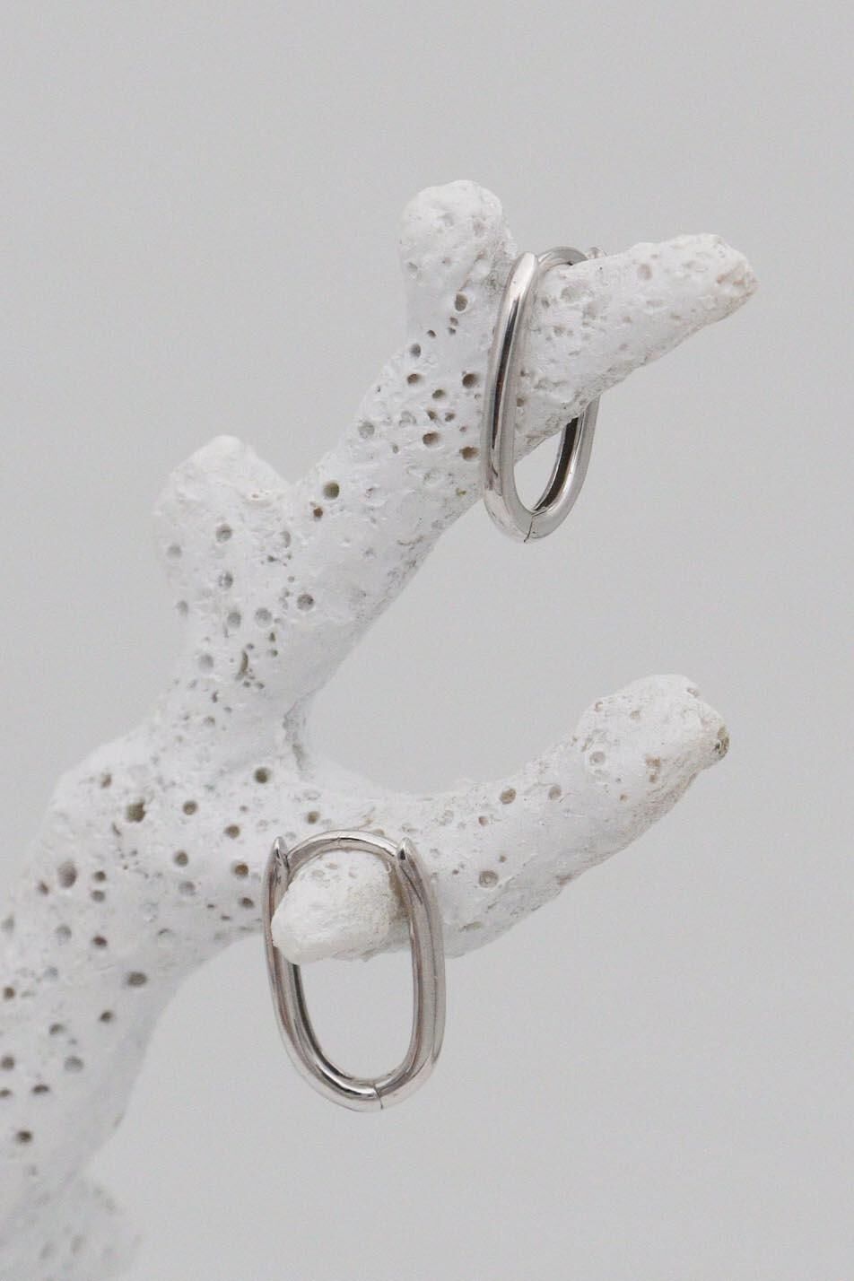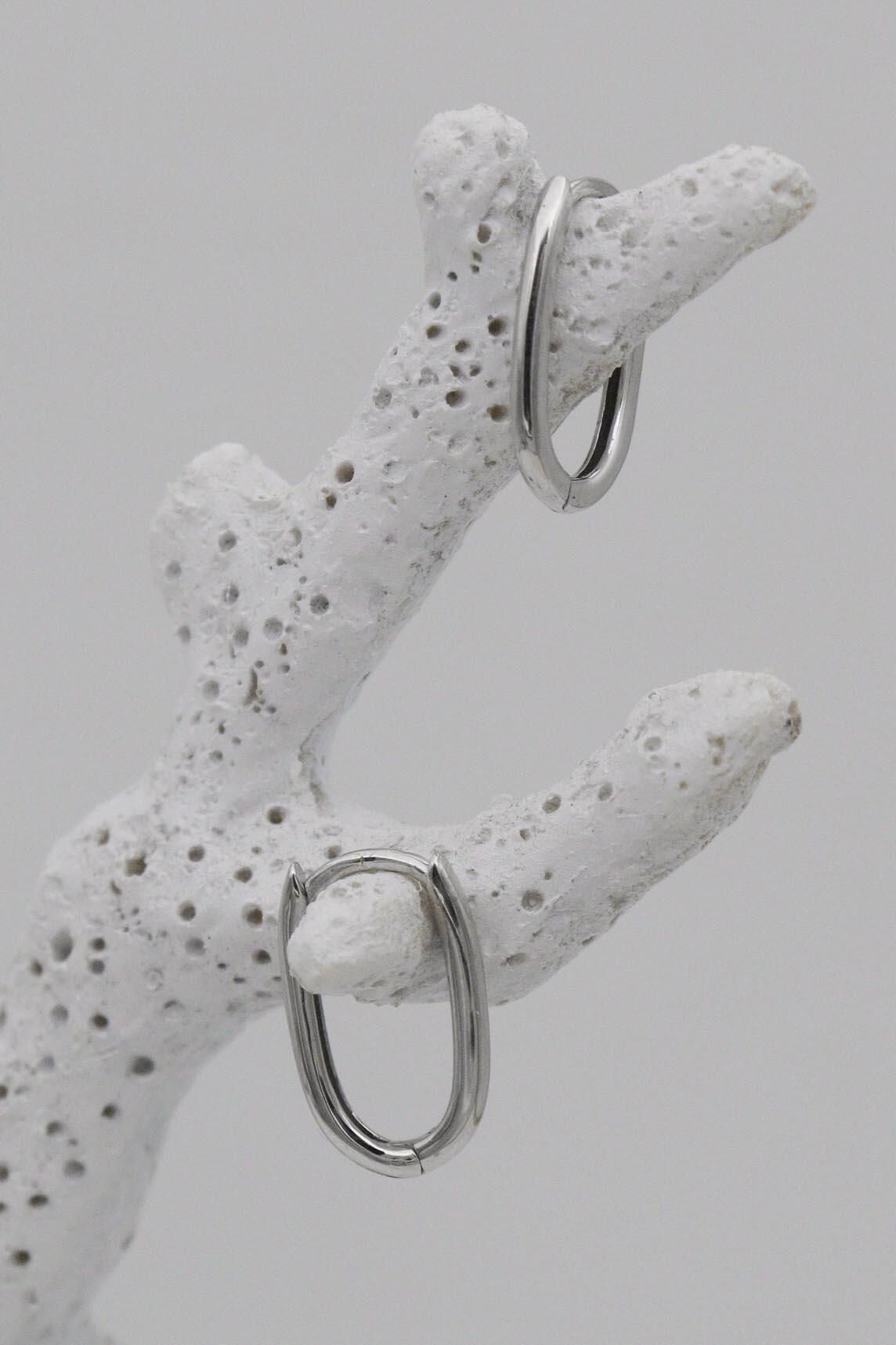 Minimal 14 Ayar Beyaz Altın Oval Küpe