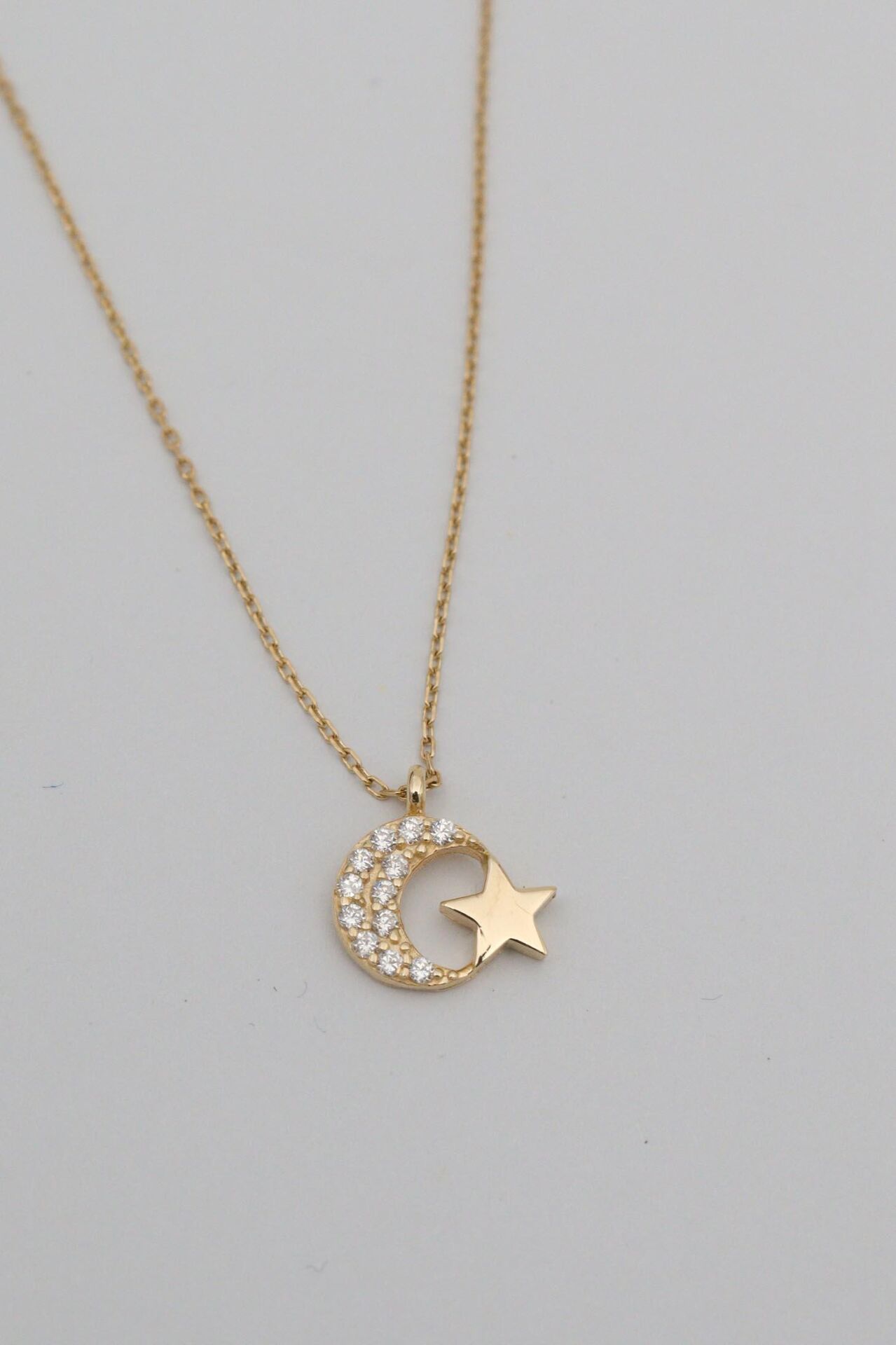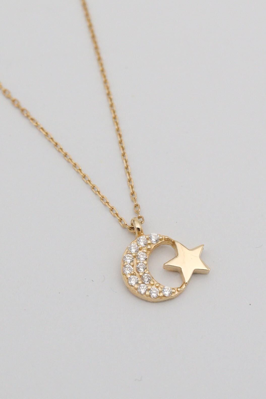 Minimal Ay Yıldız 14 Ayar Kolye