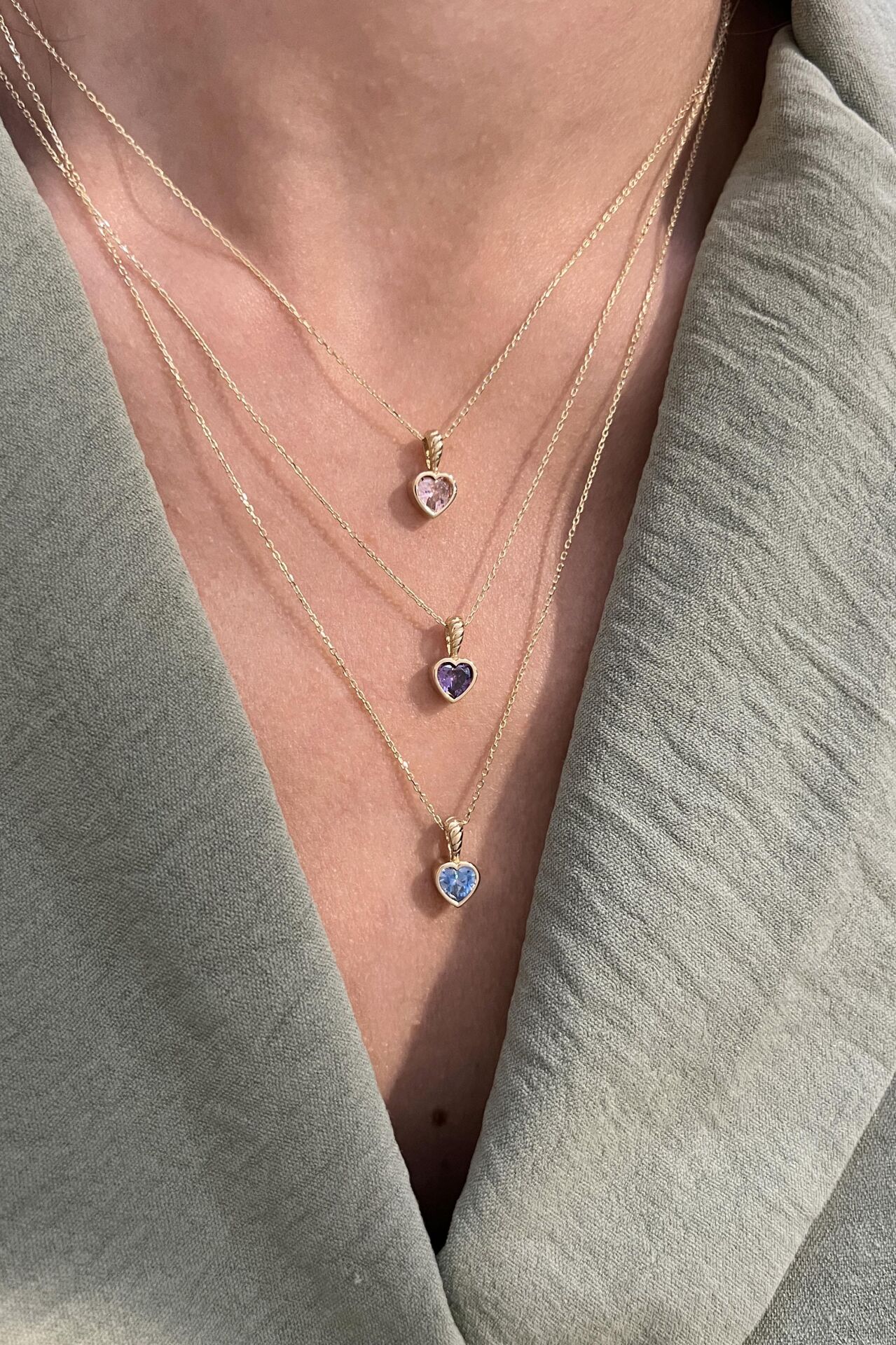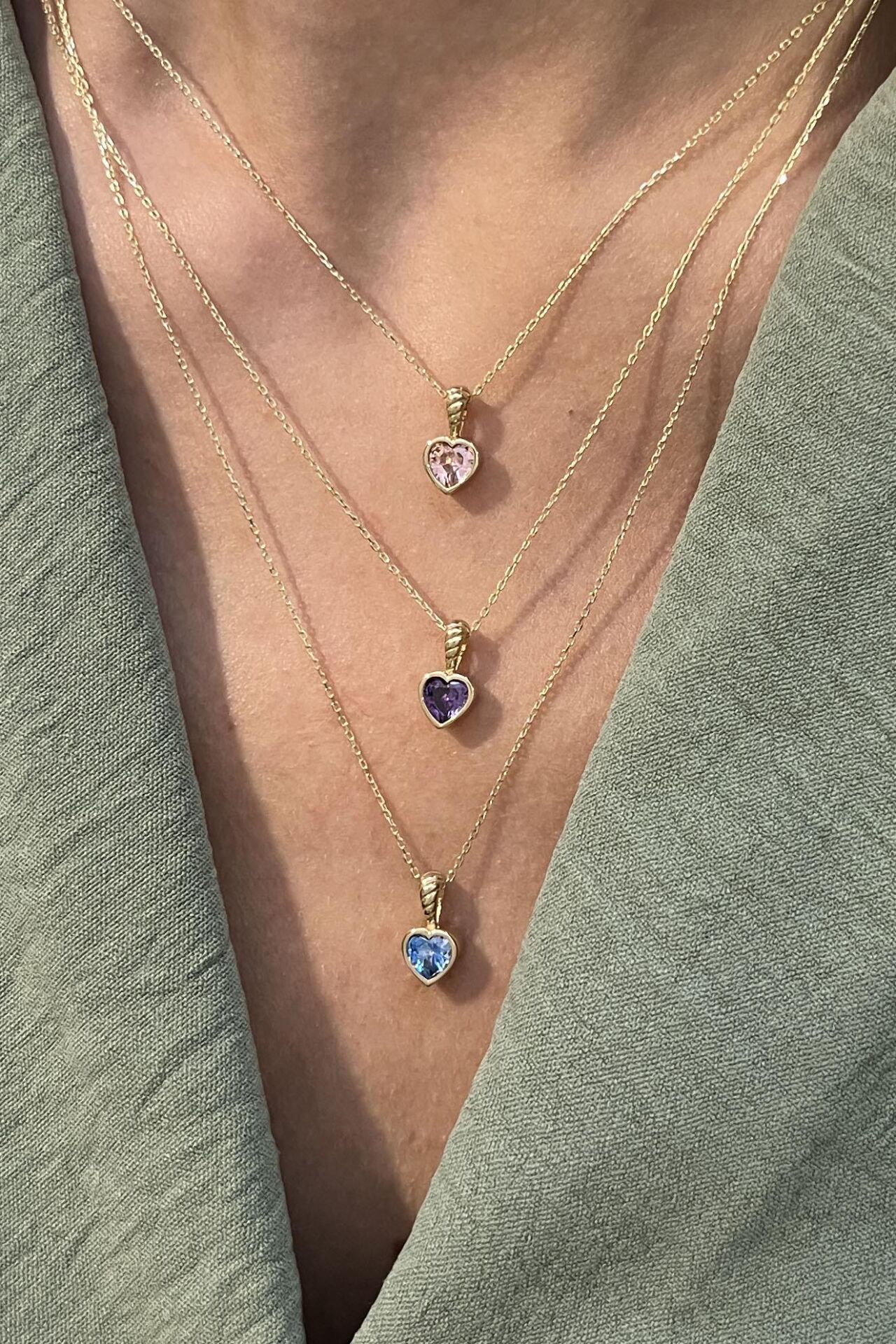 Mor Taşlı Kalp Kolye 14 Ayar Altın