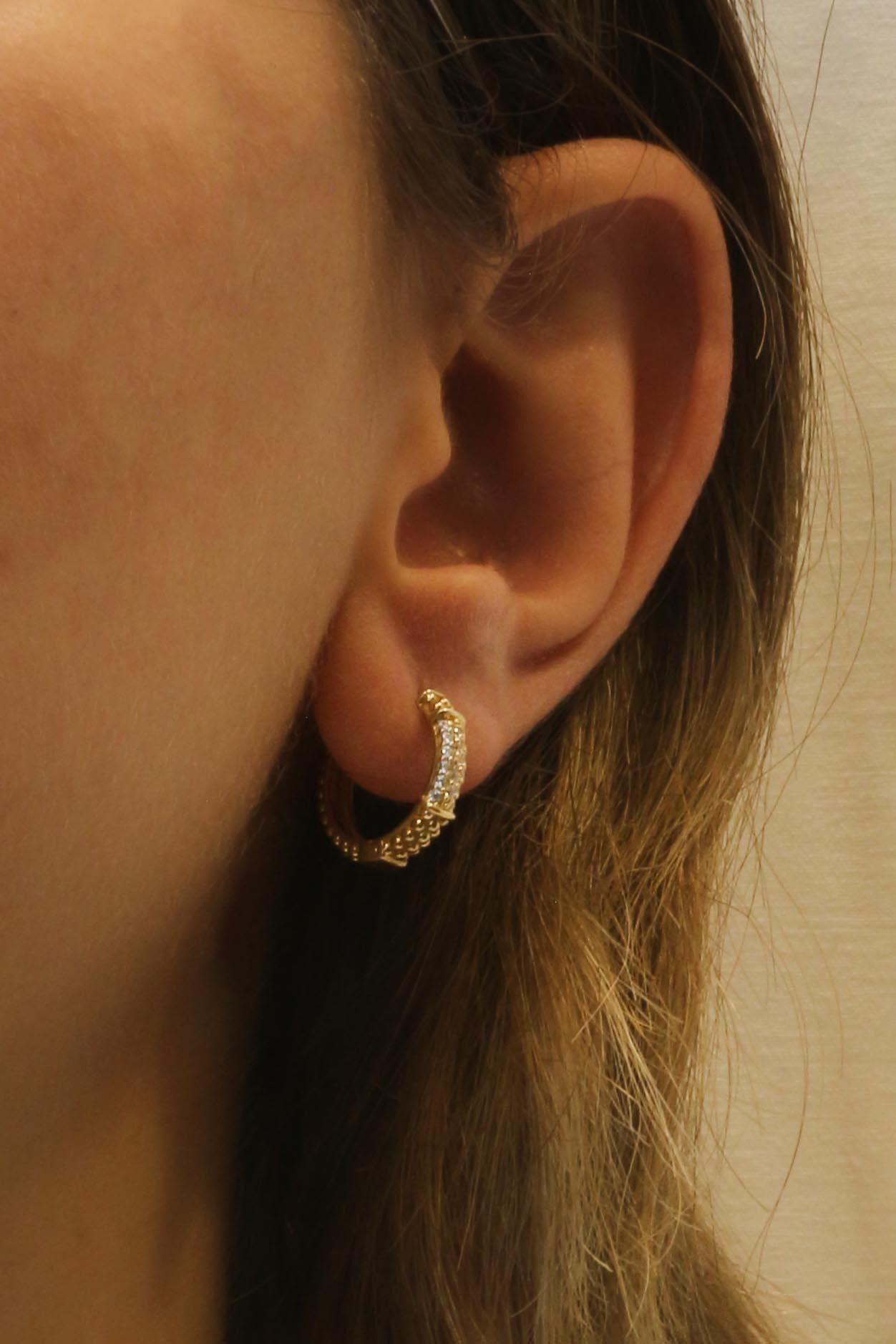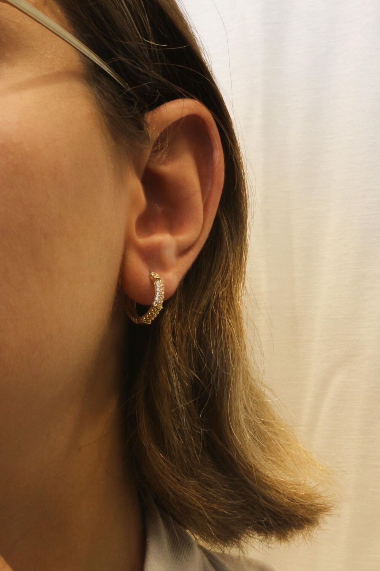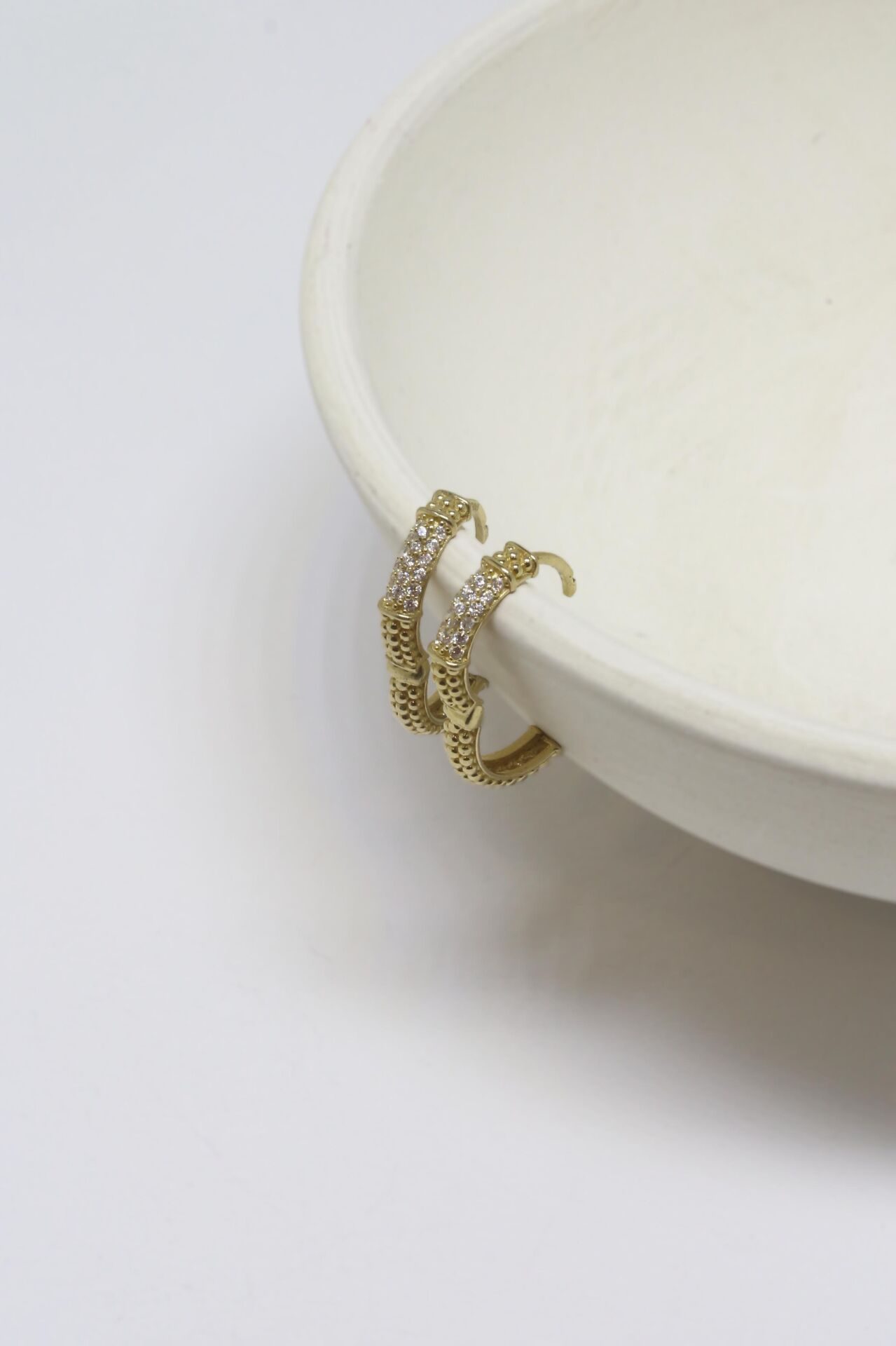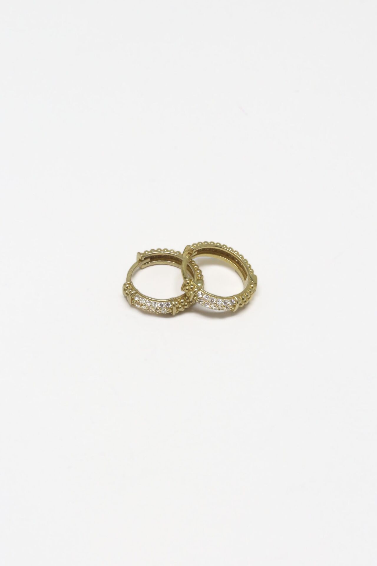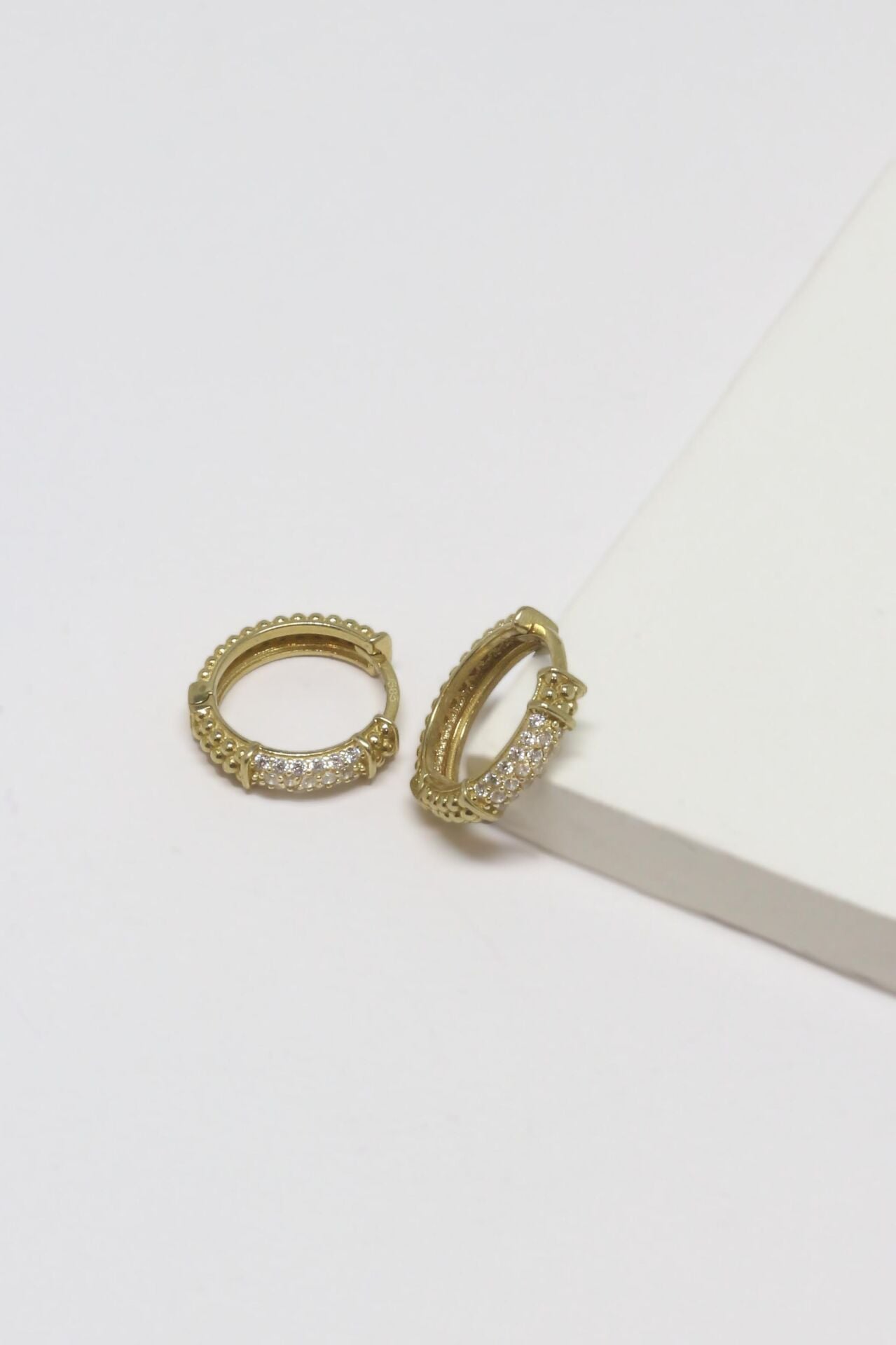Ön Tarafı Taşlı Topçuk Yüzey 14 Ayar Sarı Altın Halka Küpe