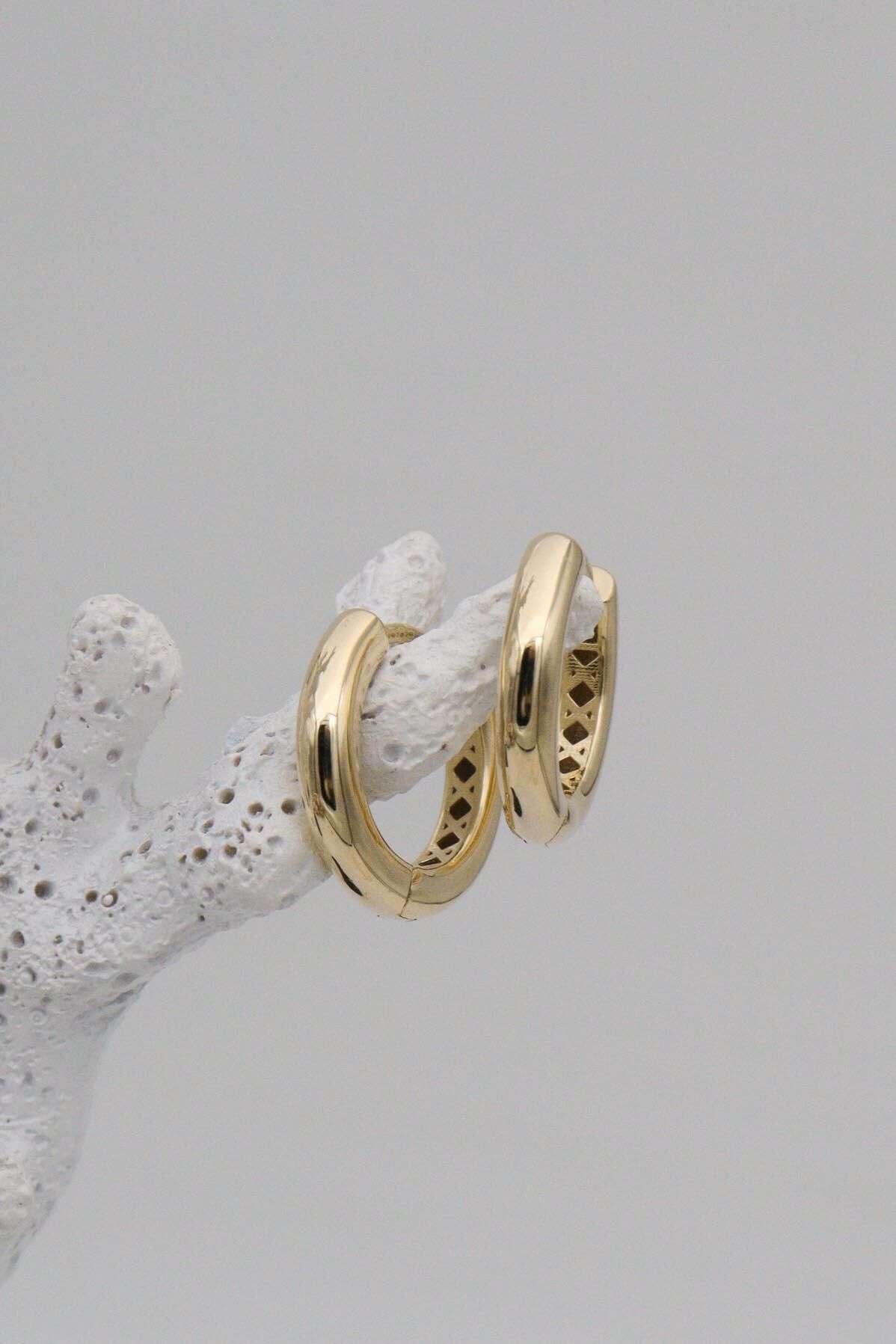 Orta Boy Bombeli 14 Ayar Altın Halka Küpe