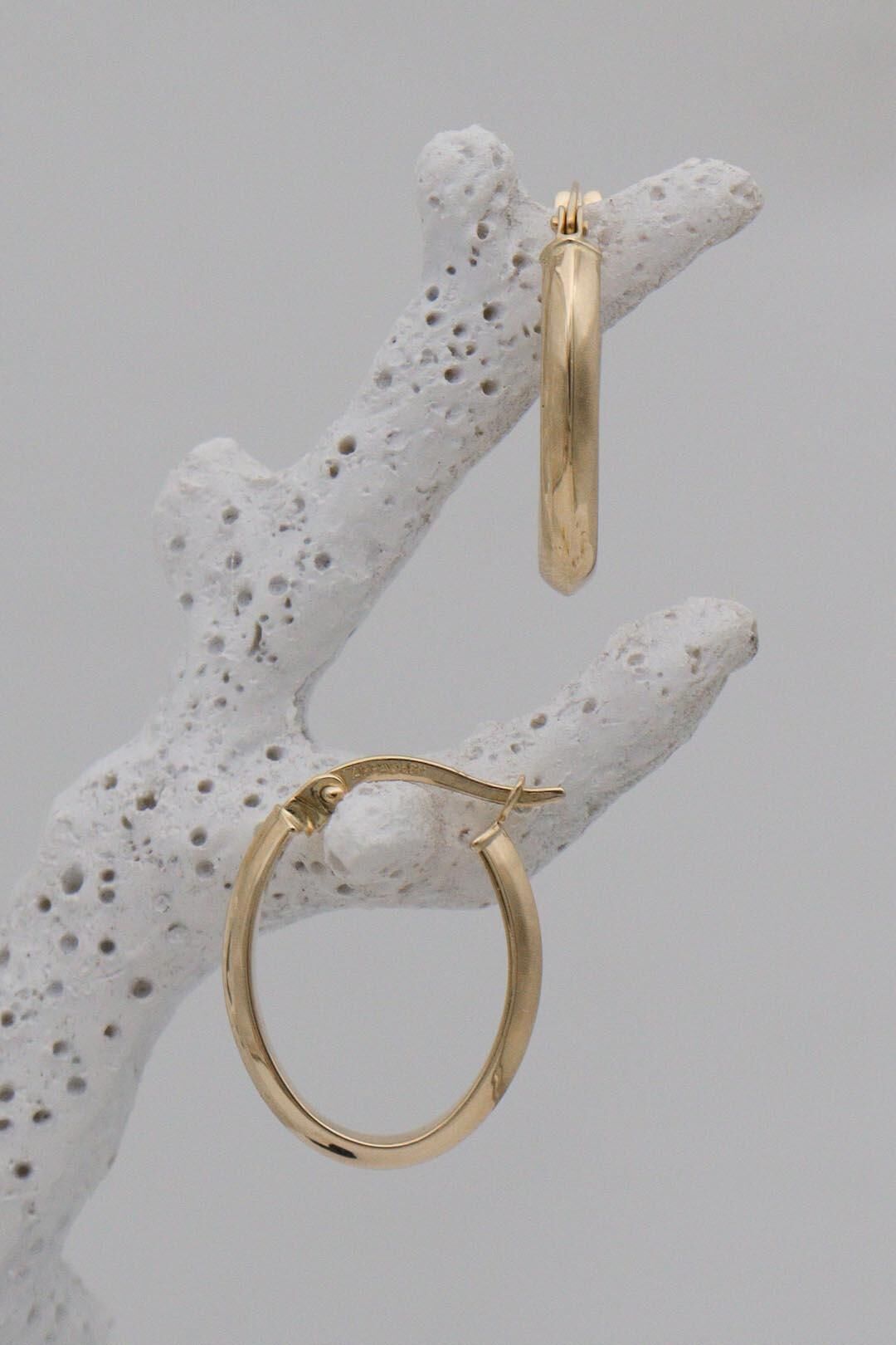 Oval Düz 14 Ayar Altın Küpe