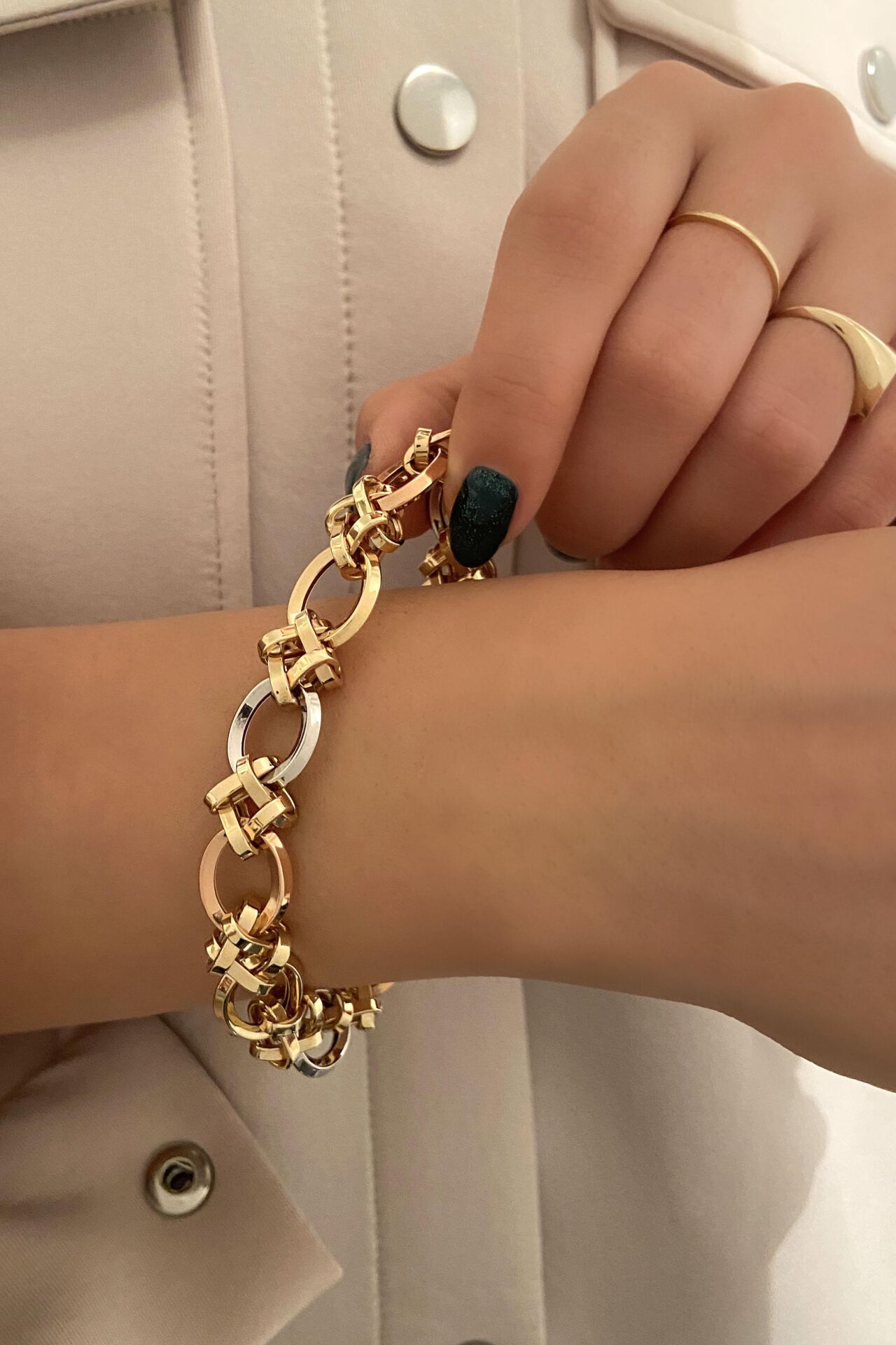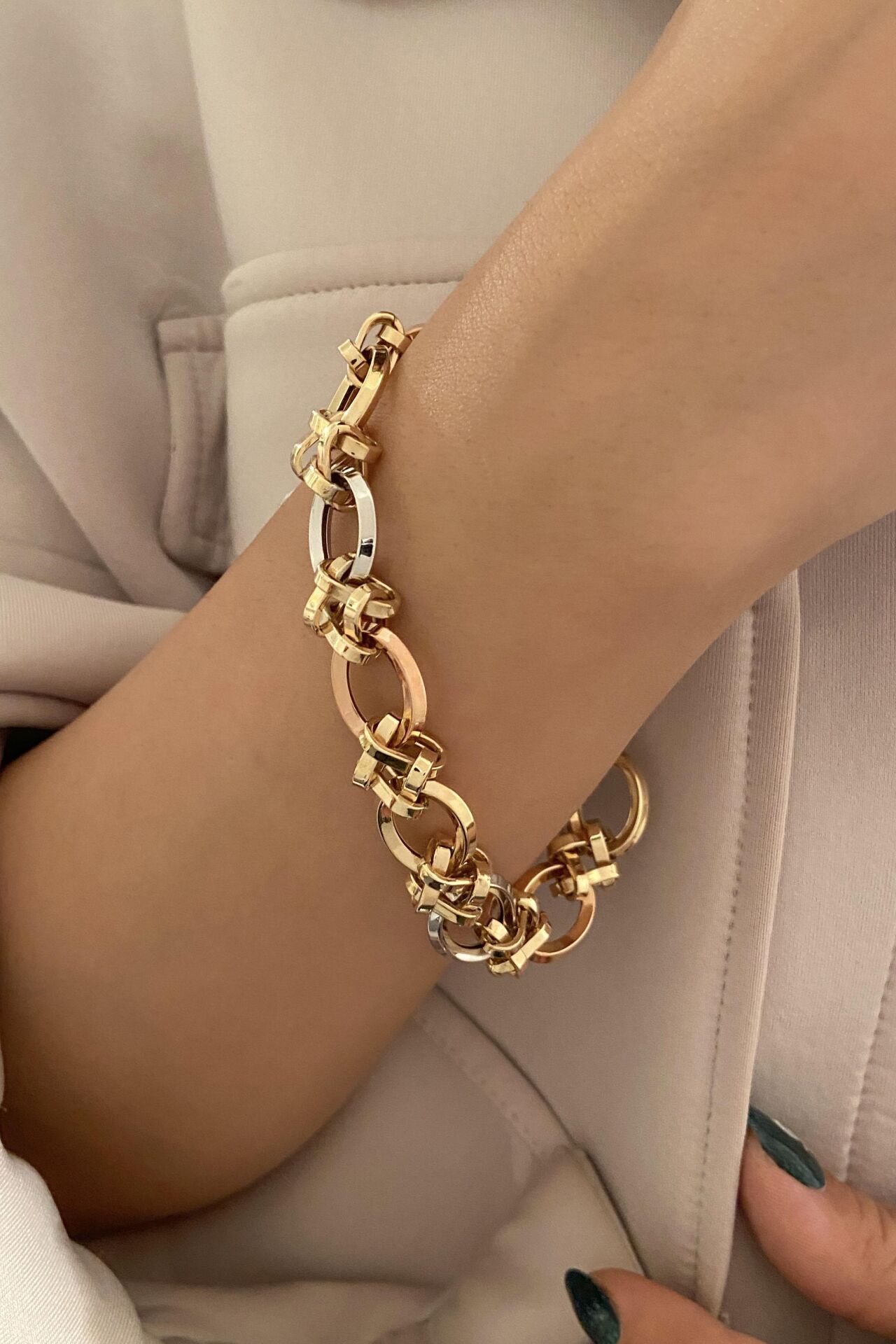 Oval Halkalı Üç Renk 14 Ayar Altın Bileklik