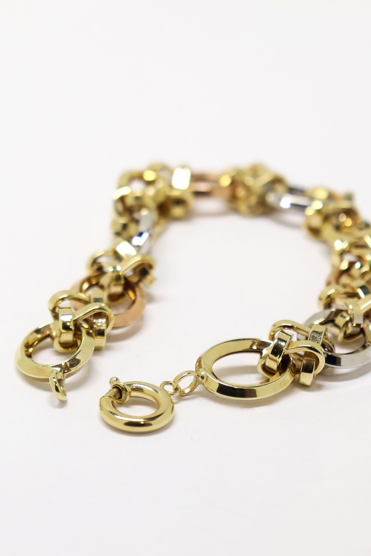 •Ağırlık: 13,18 gr •Renk: Üç Renk Altın (Beyaz-Sarı-Rose) •Bileklik Ölçü: 21 cm