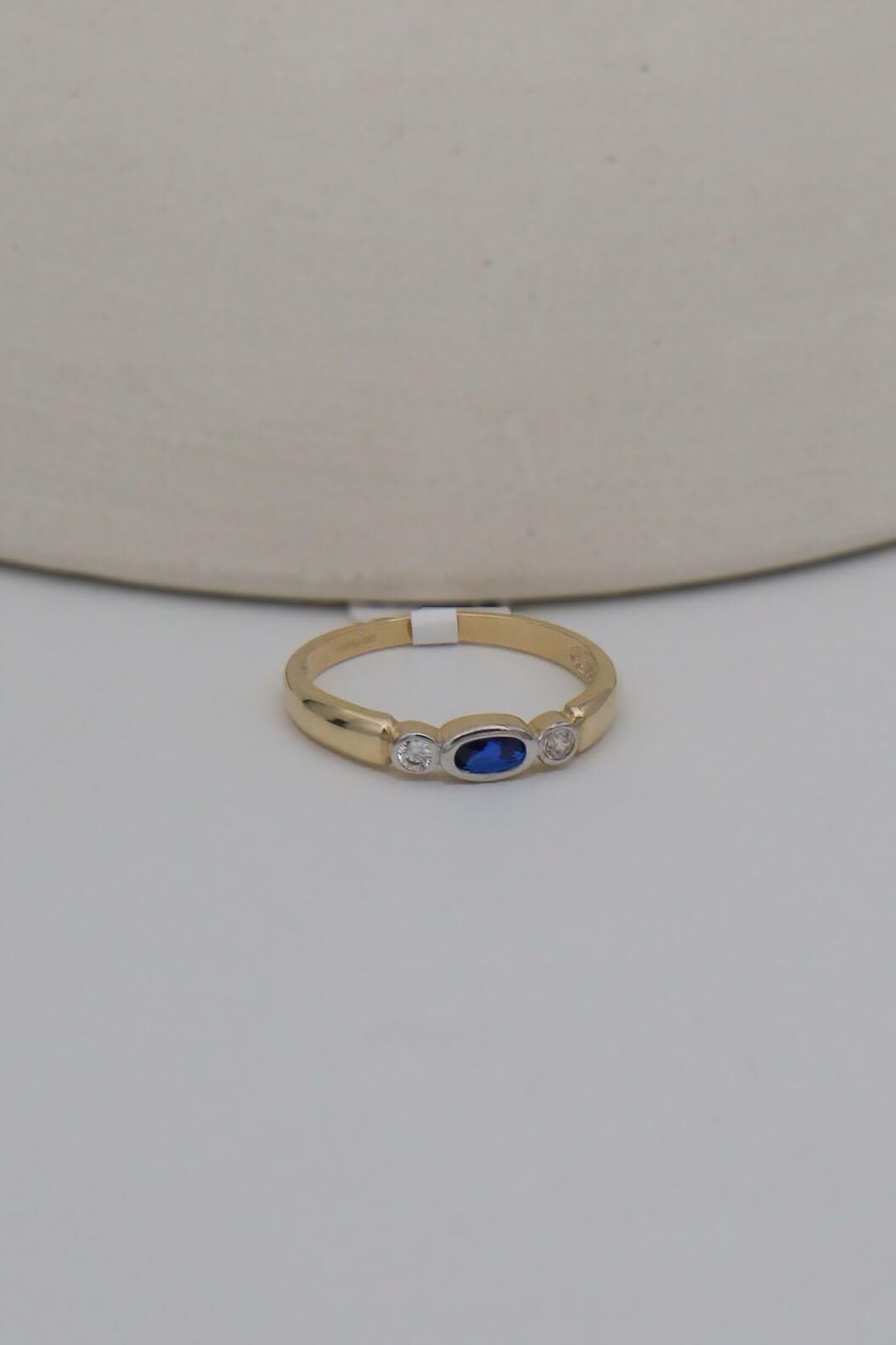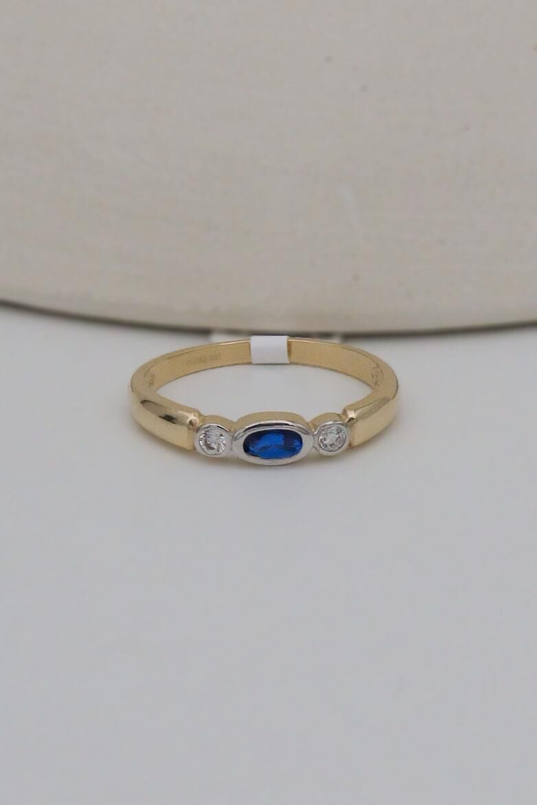 Oval Mavi Taşlı Minimal 14 Ayar Altın Yüzük