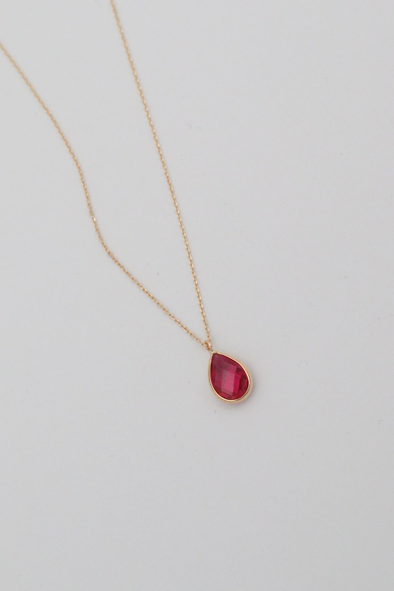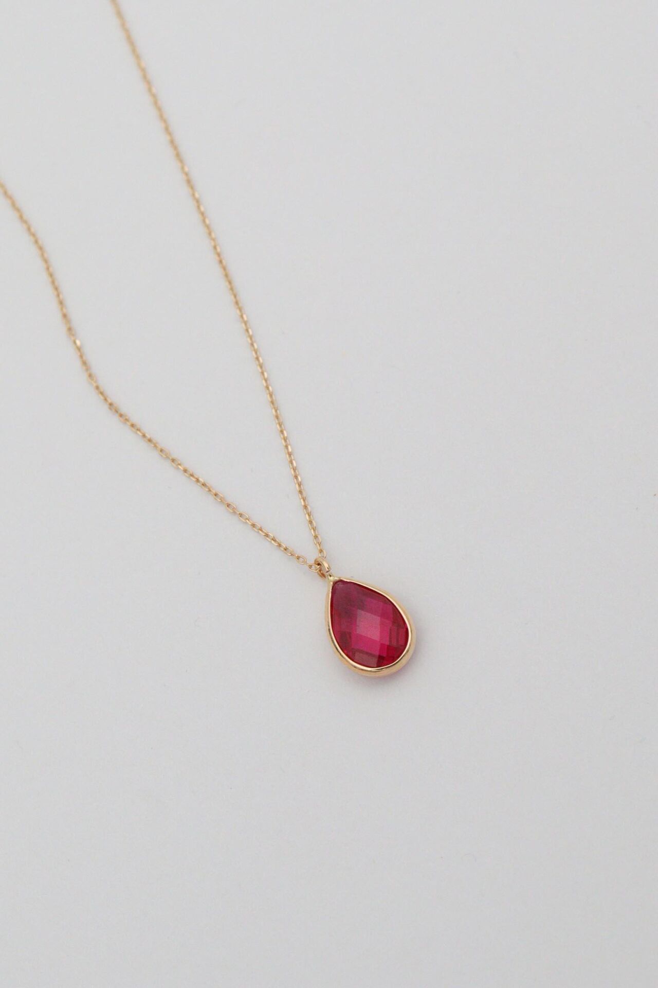 Pembe Damla Taşlı 14 Ayar Altın Kolye