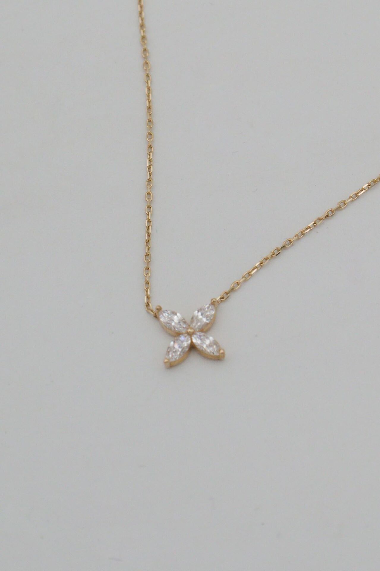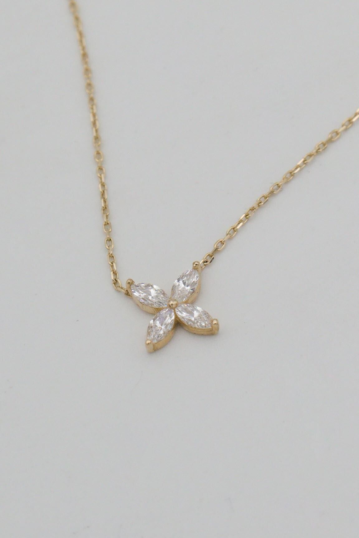 Sarı Dört Taşlı Lotus Kolye 14 Ayar Altın