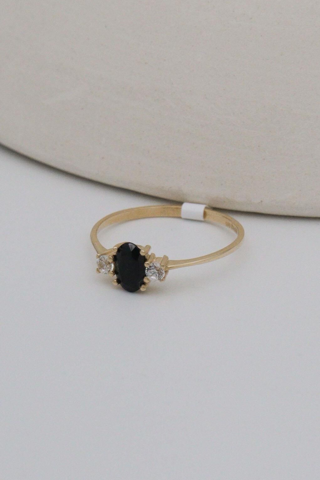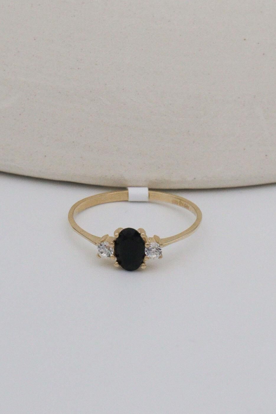 Siyah Oval Taşlı 14 Ayar Altın Minimal Yüzük