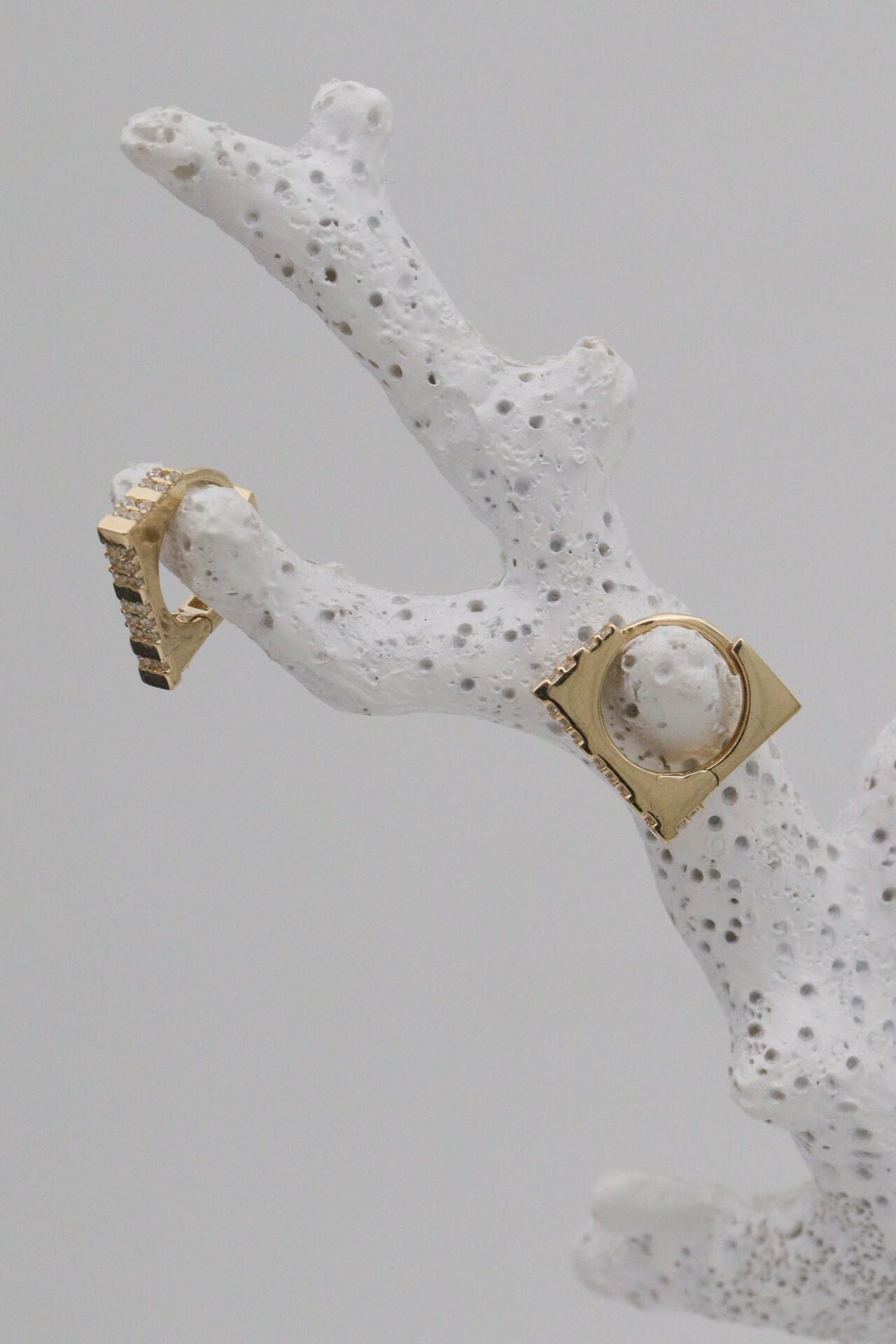 Taşlı 14 Ayar Altın Minimal Beşgen Küpe