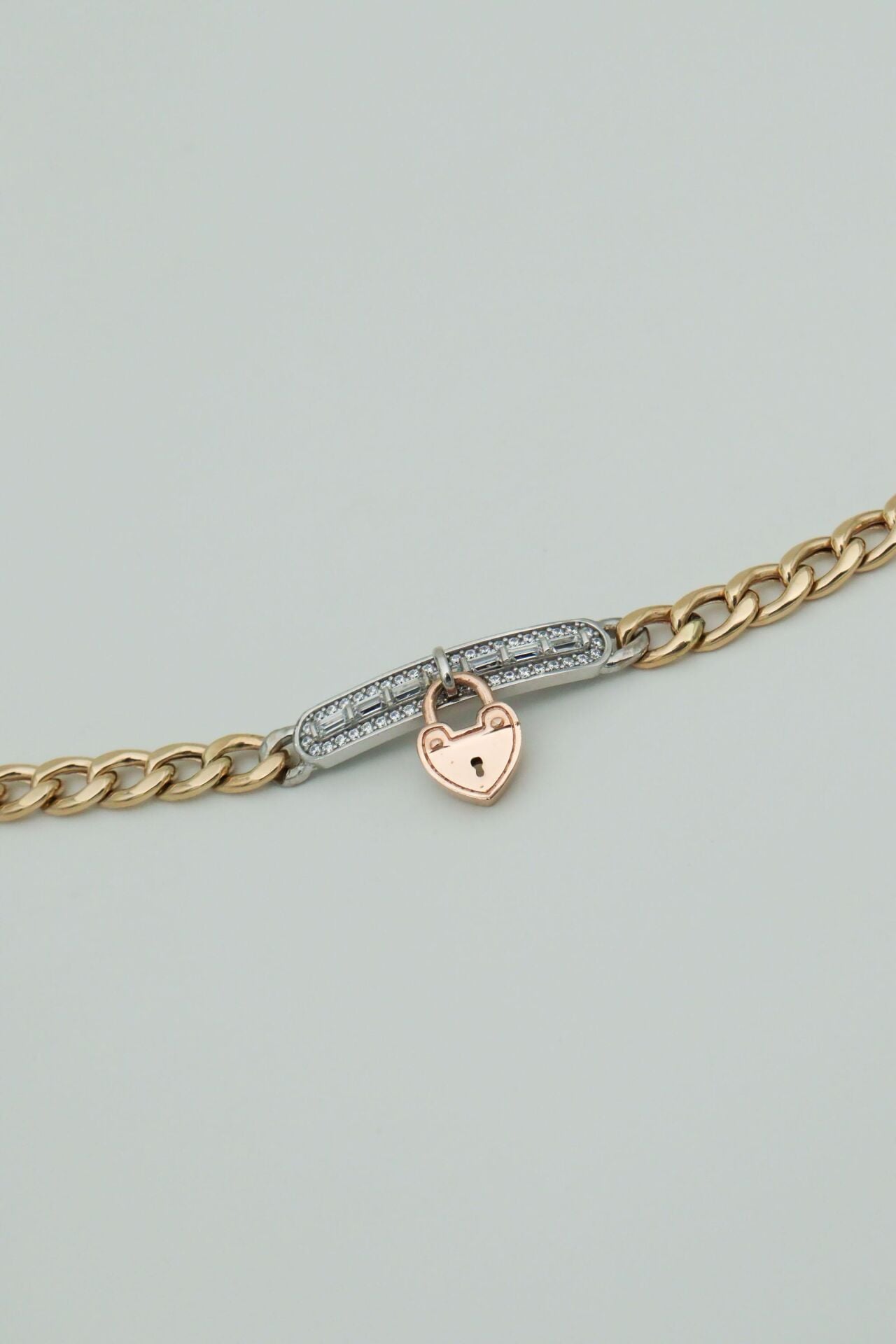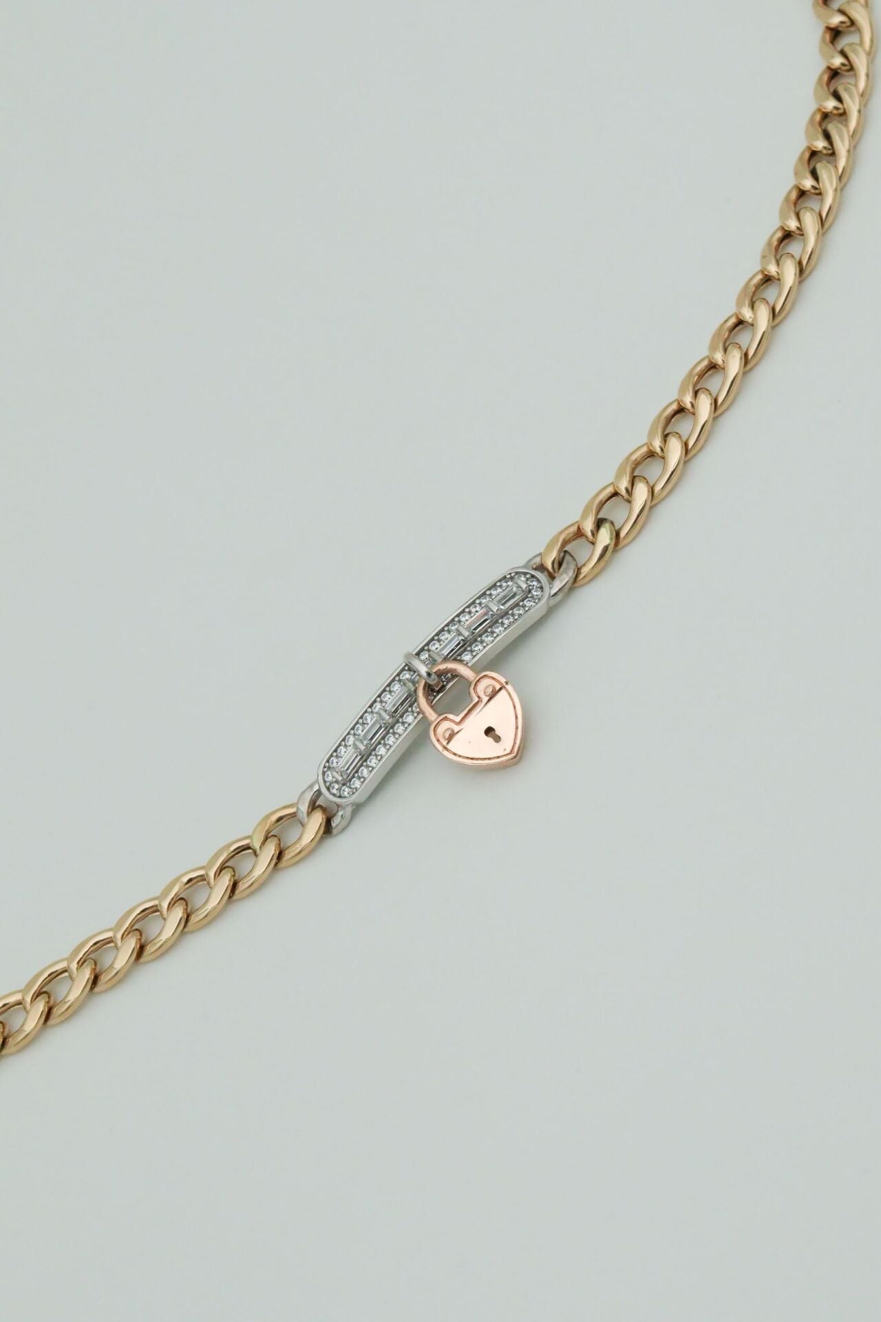 Taşlı Kalp Sallantılı 14 Ayar Altın Gurme Zincir