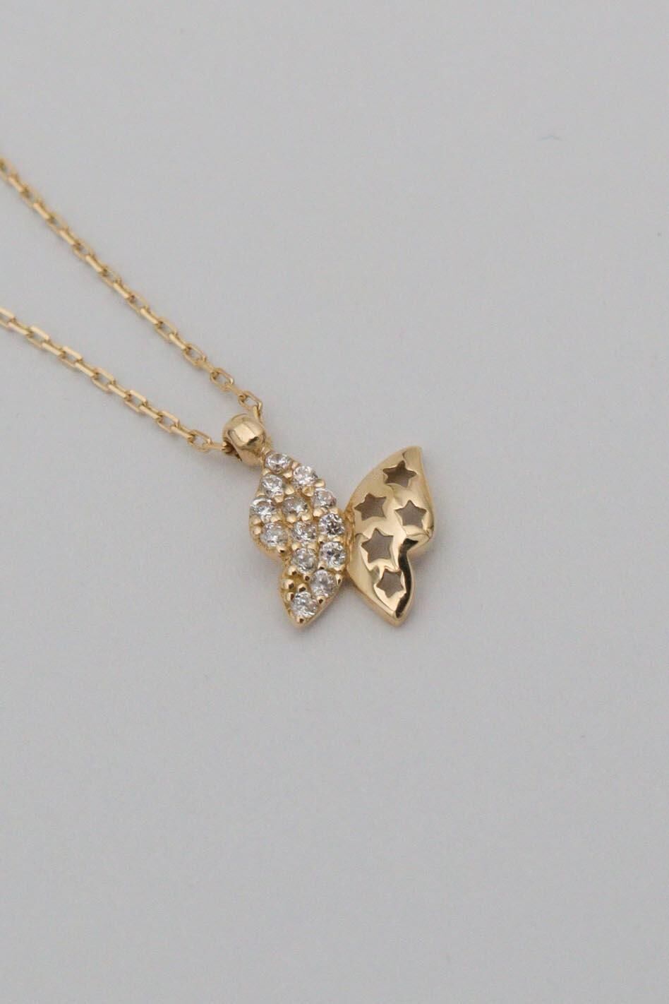 Taşlı ve Yıldızlı 14 Ayar Altın Minik Kelebek Kolye
