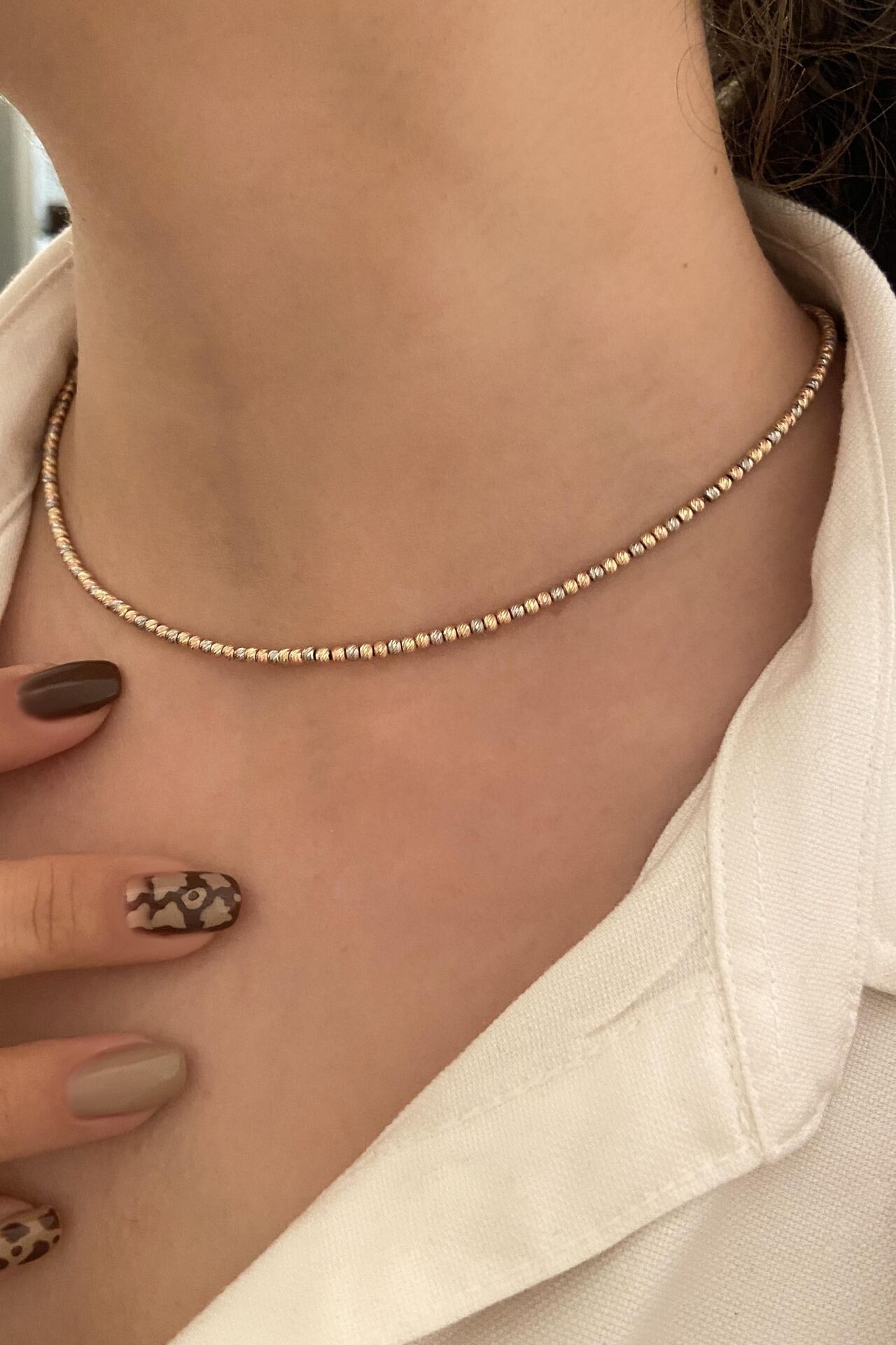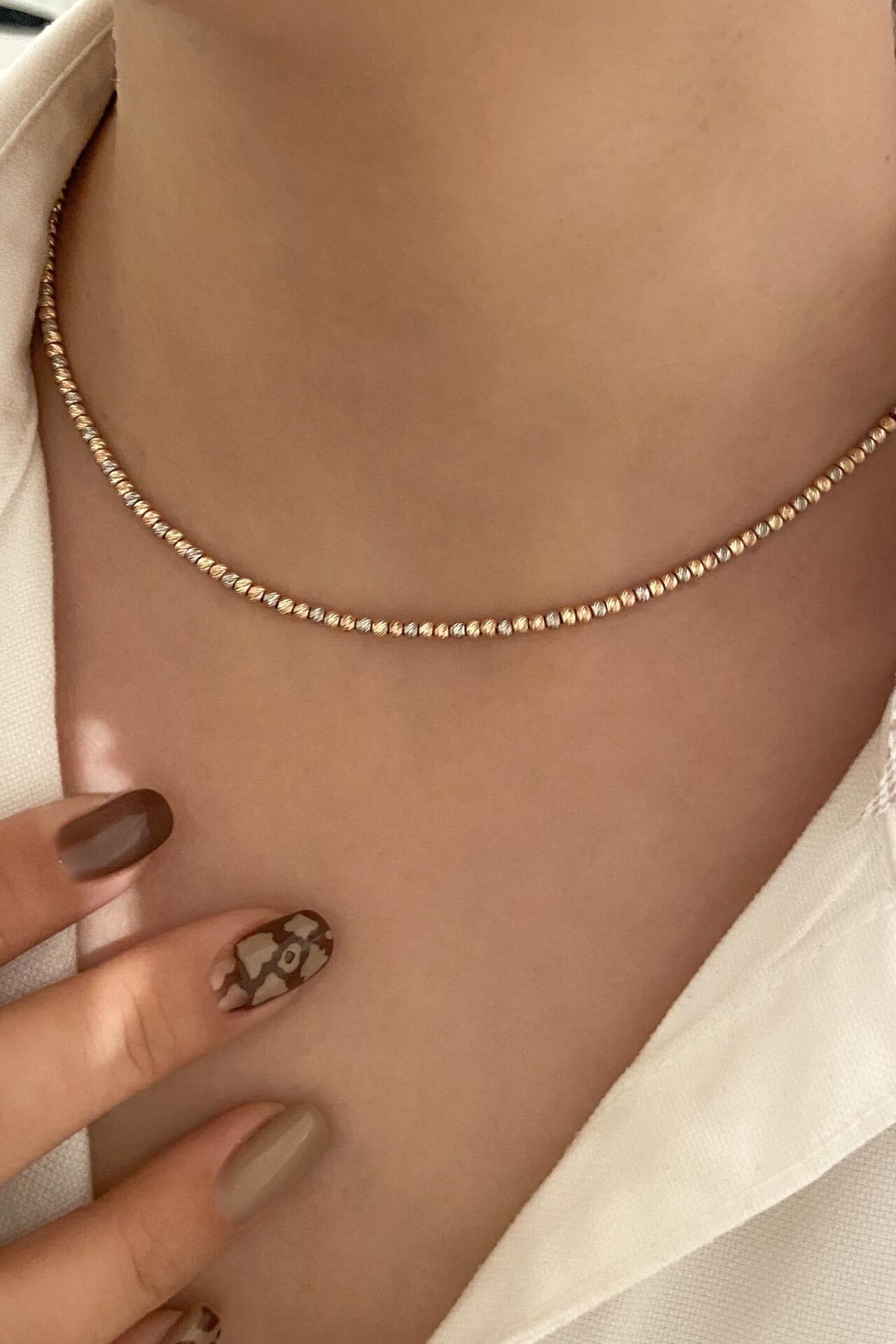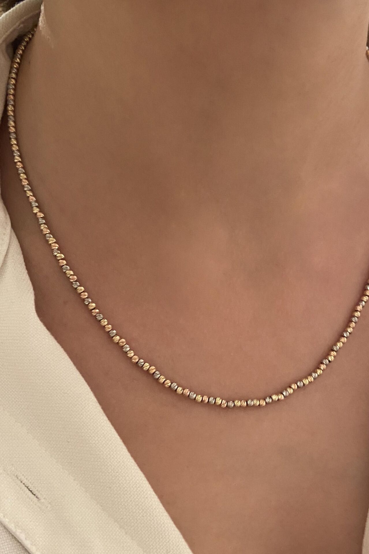Üç Renk Dorikalı Tam Tur 14 Ayar Altın Kolye