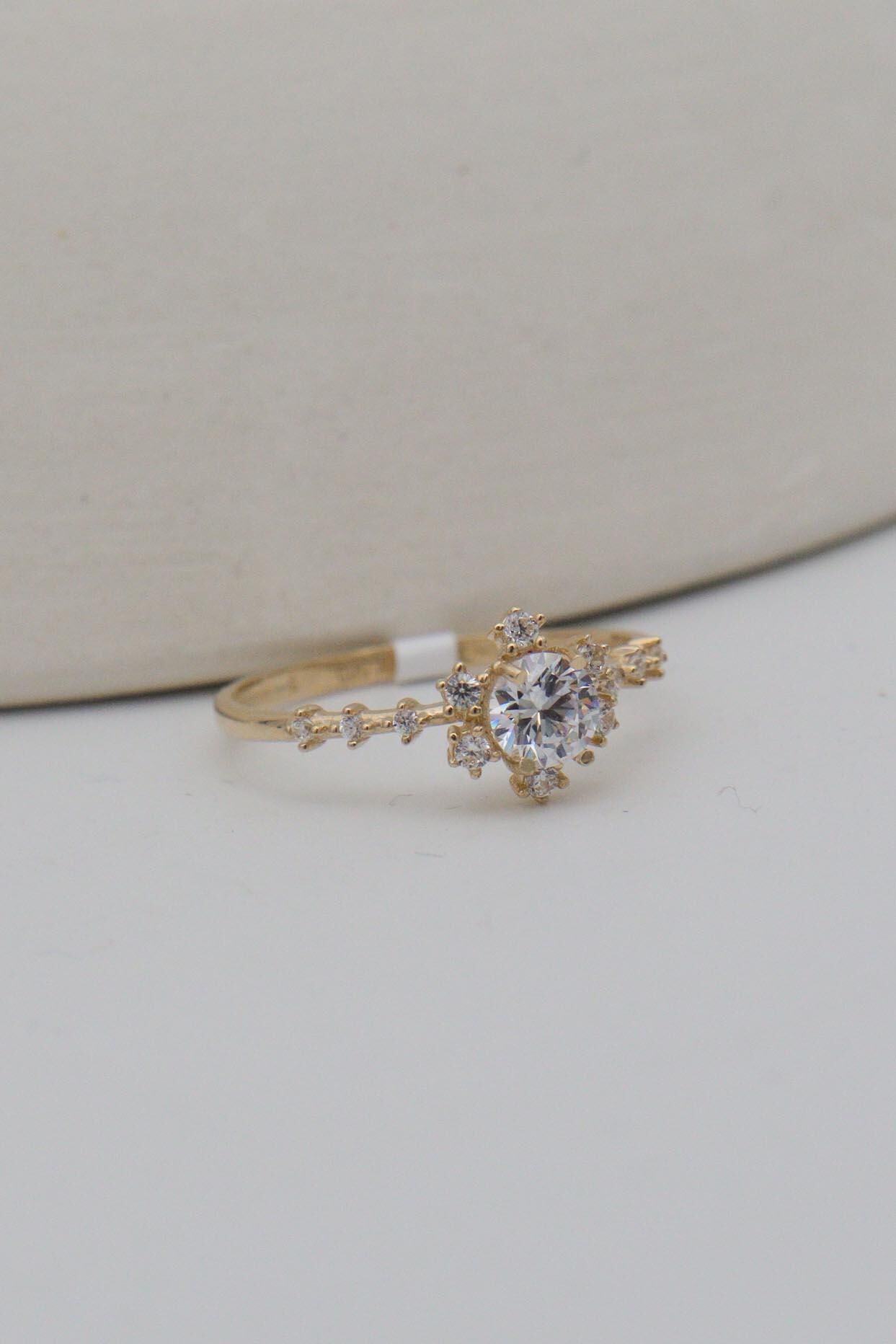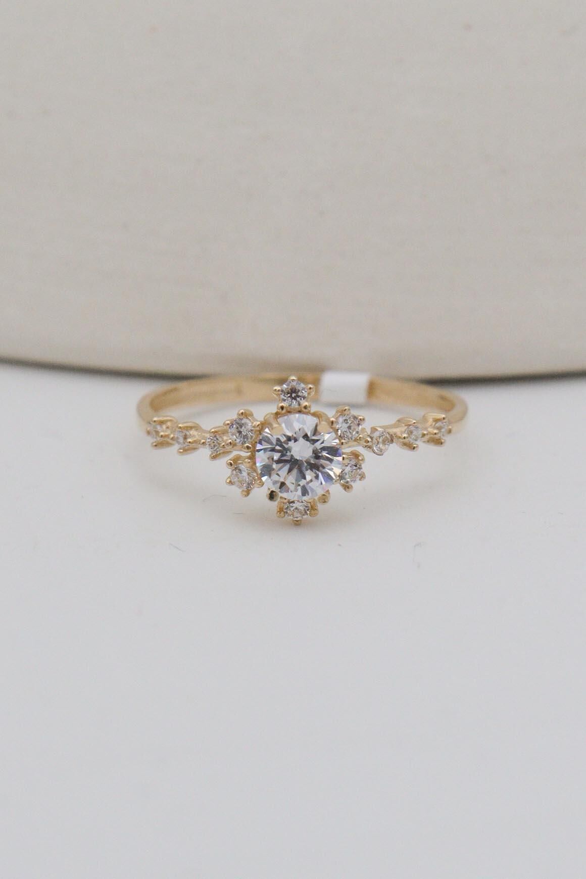 Yanları Üç Taşlı Lotus Yüzük 14 Ayar Altın