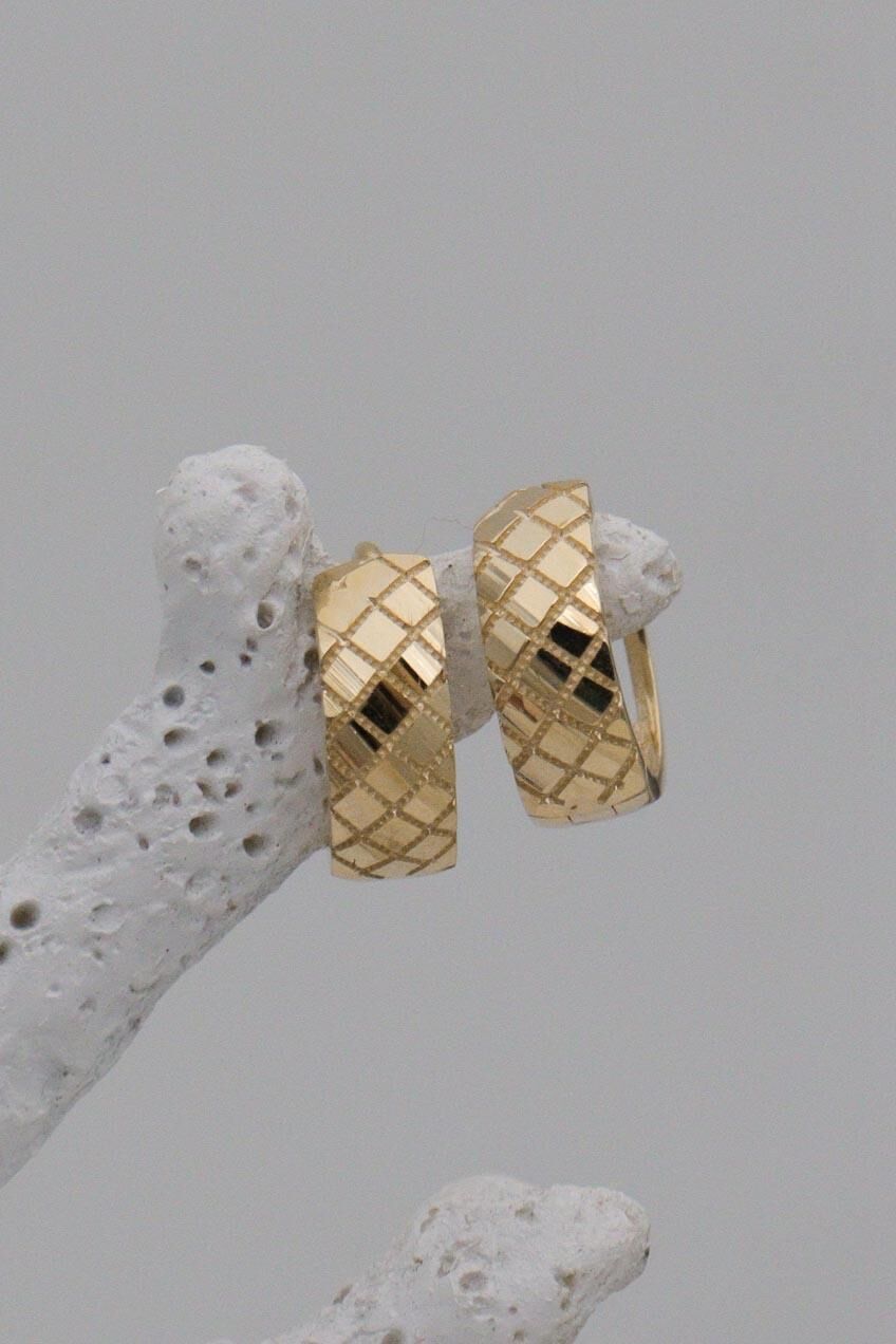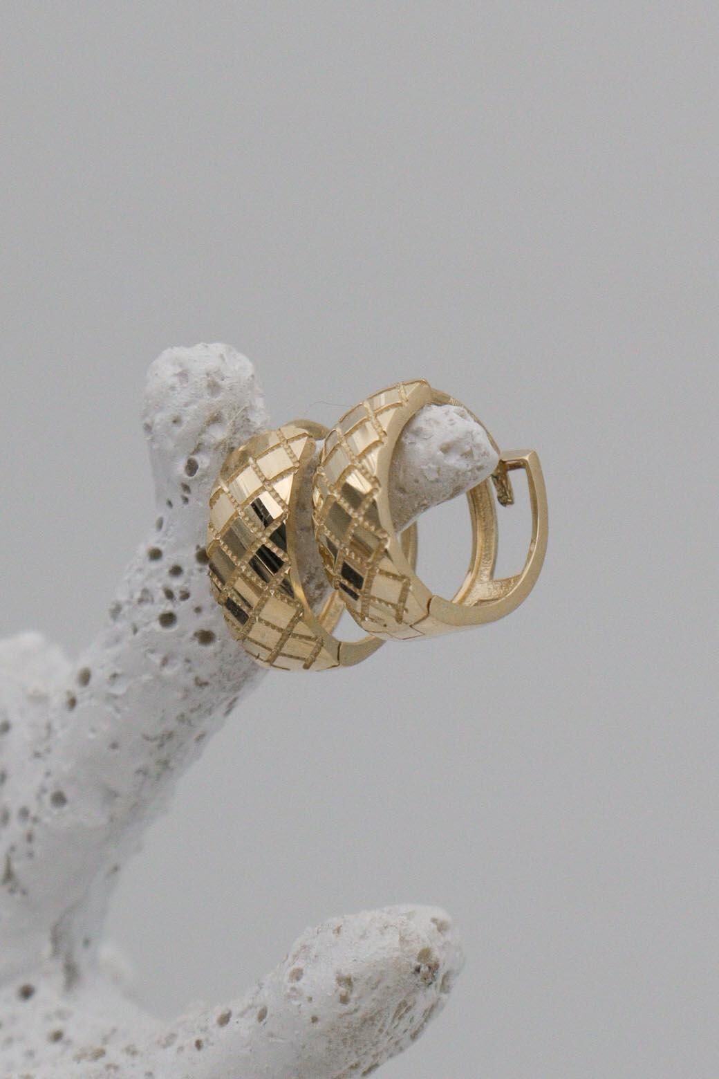 Yılan Pulu Desenli 14 Ayar Mini Halka Küpe