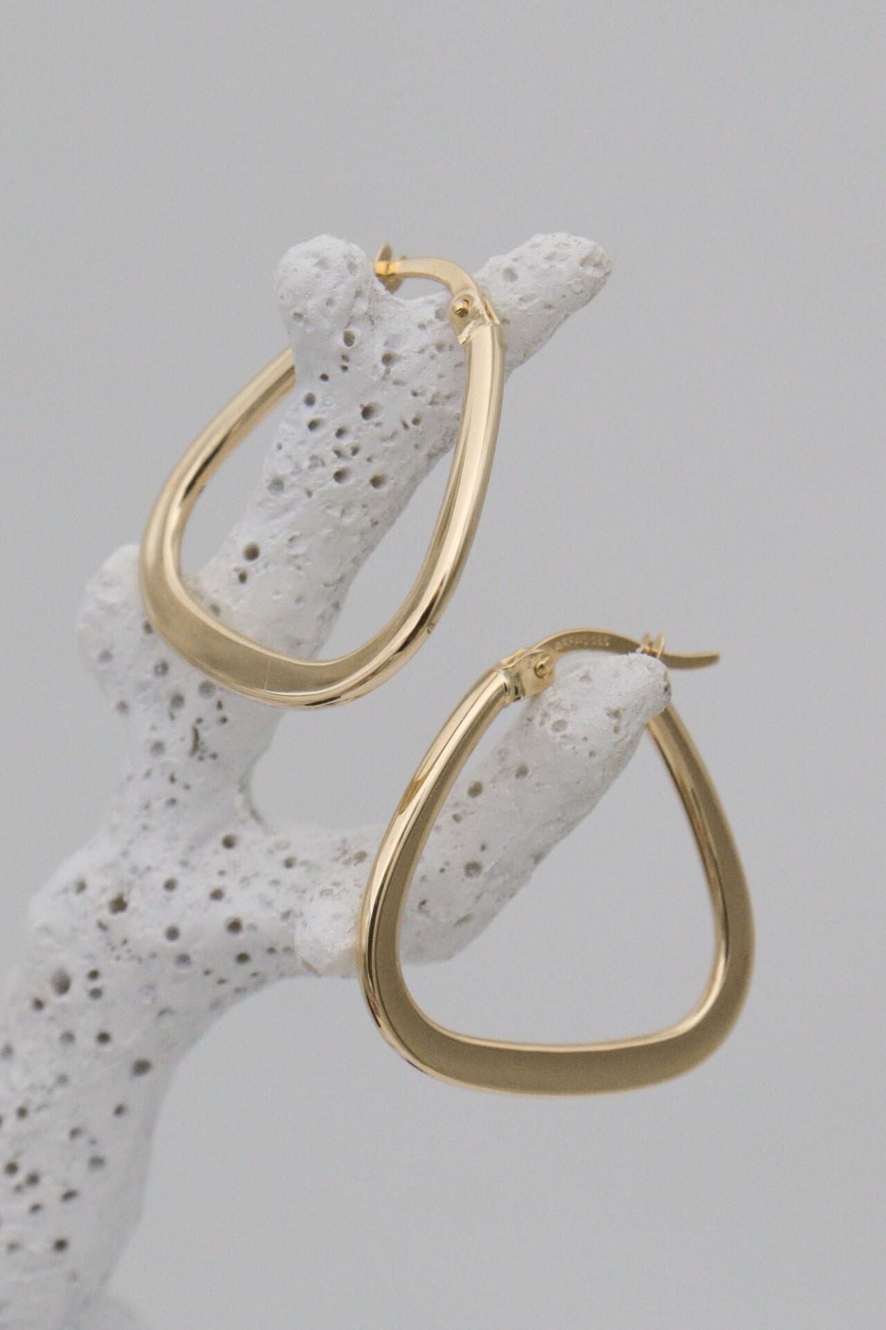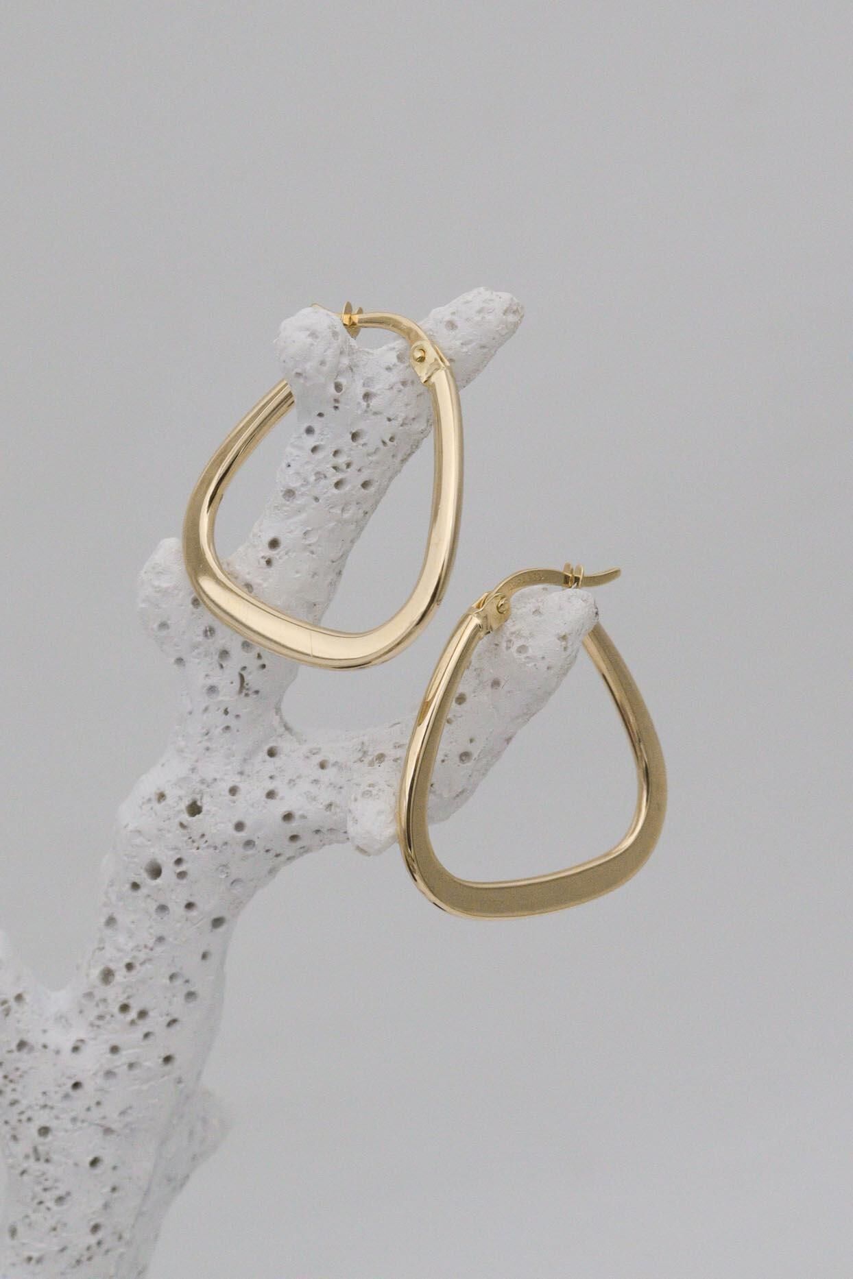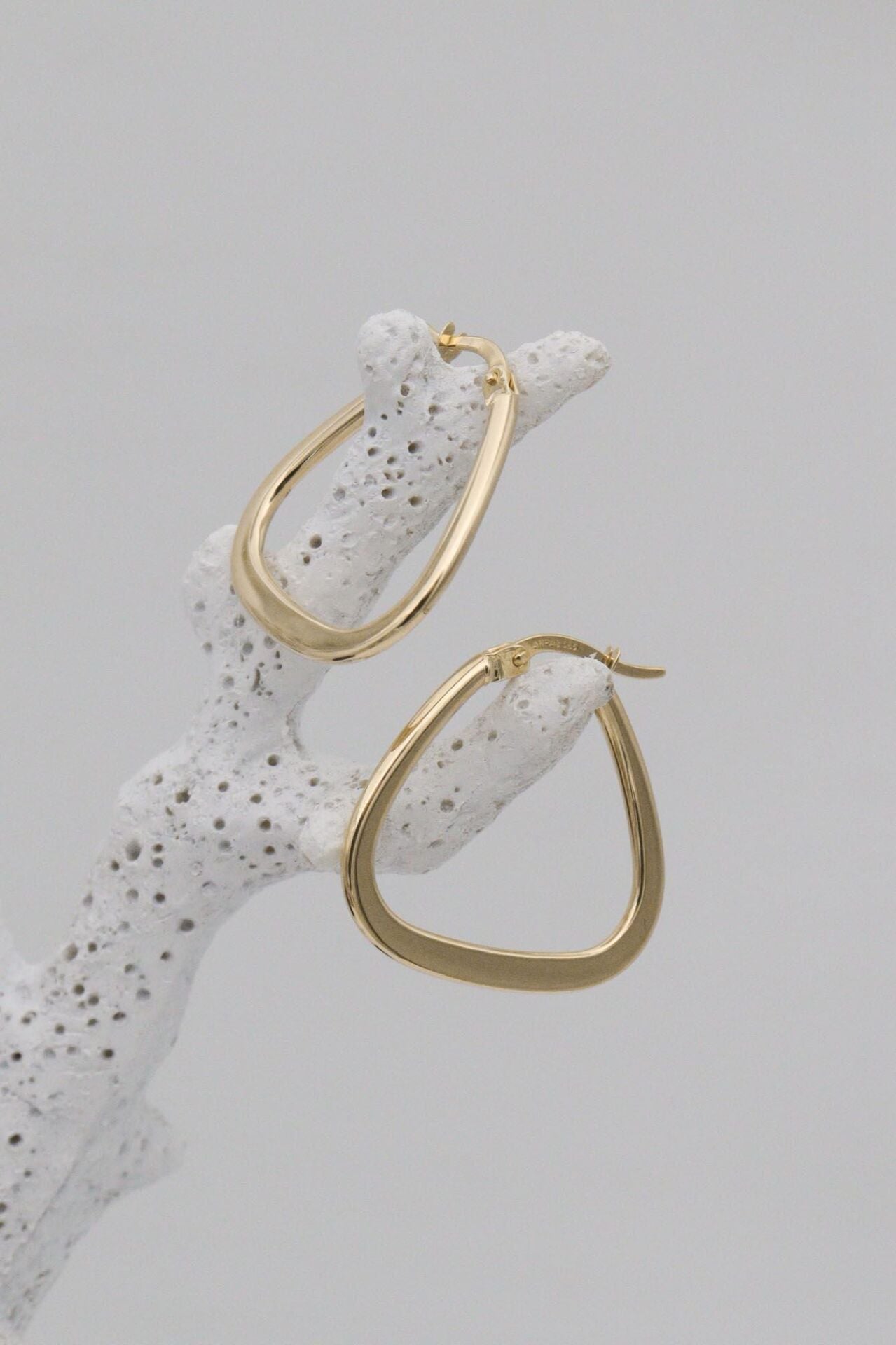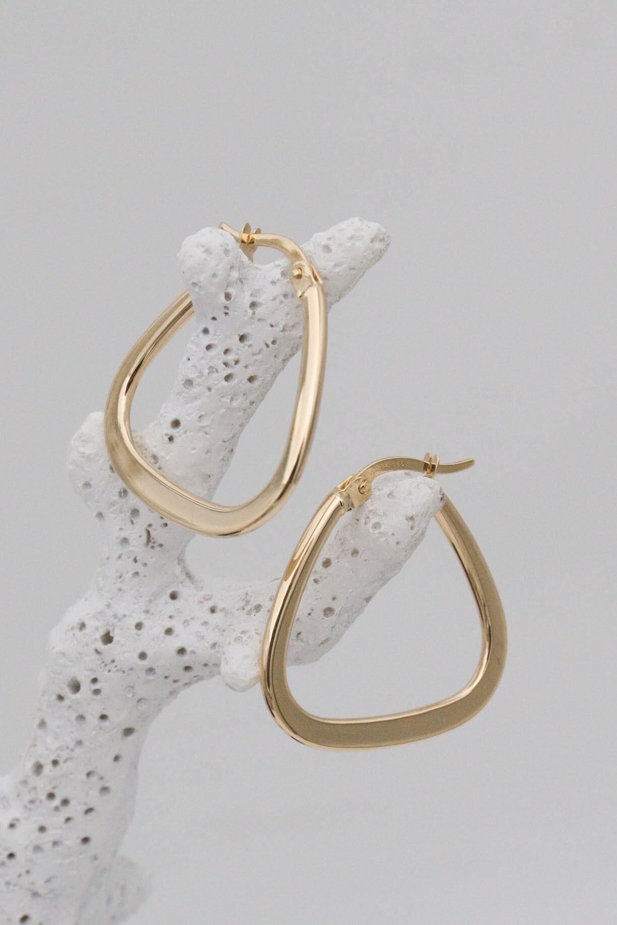 Yuvarlak Kenarlı 14 Ayar Altın Üçgen Küpe